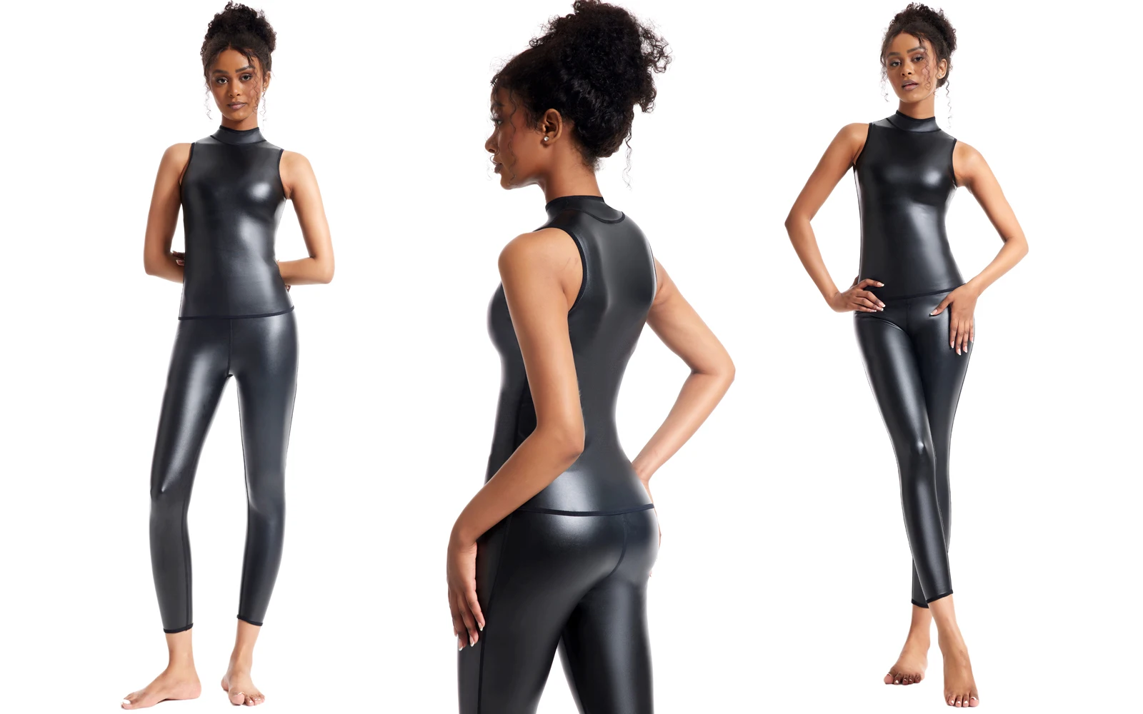 Fashionable Faux Leather Design: Fashion and Sexy Design, Every Cool women Must Have it. This slim fit shirt showcases a trendy faux leather finish, instantly elevating your style and making a bold fashion statement.