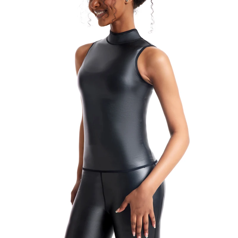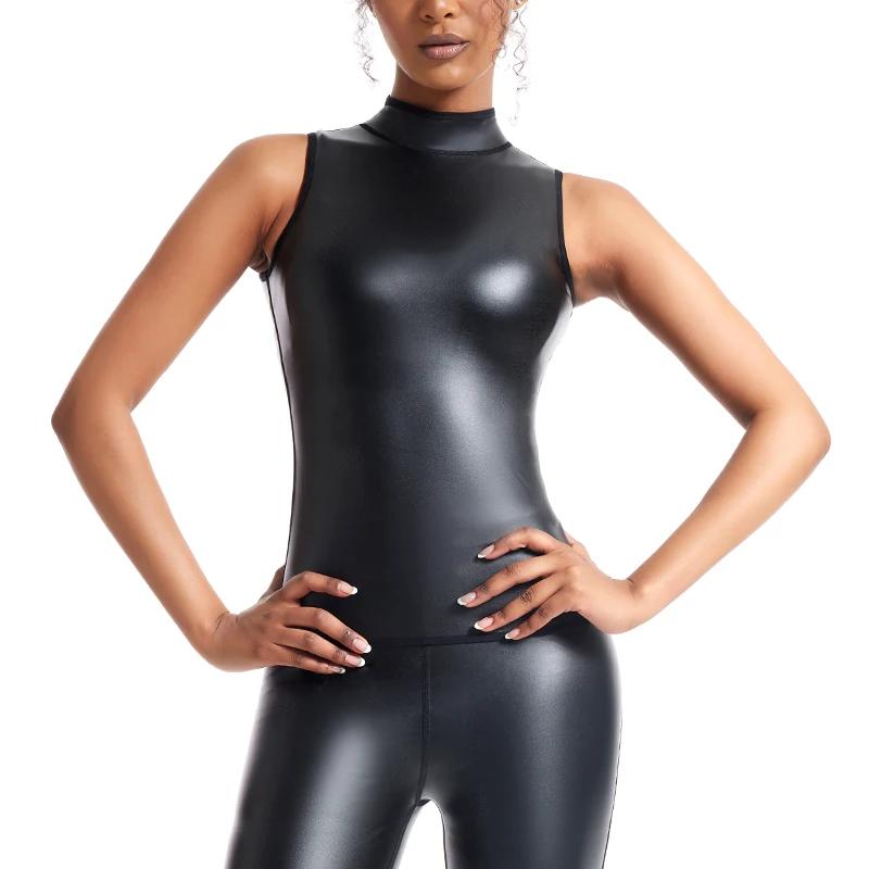 TONGGUO Women Faux Leather Sleeveless Vest Tank Tops Lady Motorcycle Leather Shirts Girl Sexy Pu Leather Nightclub Styles Tshirt