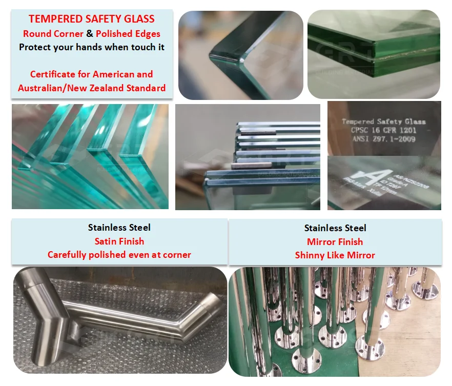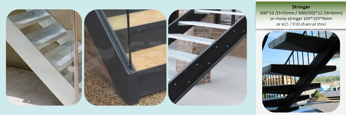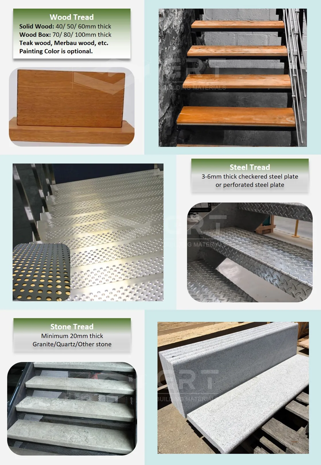 * Railing – can be glass railing, cable railing, rod railing, perforated steel plate railing, etc.
