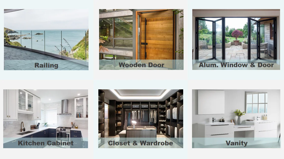 * Railing – can be glass railing, cable railing, rod railing, perforated steel plate railing, etc.