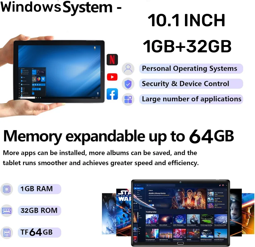 Top Sales 10.1 ” Tablet PC NX16A Windows 10 RAM 2GBDDR3+32GB Dual Cameras WIFI Quad Core Bluetooth-Compatible