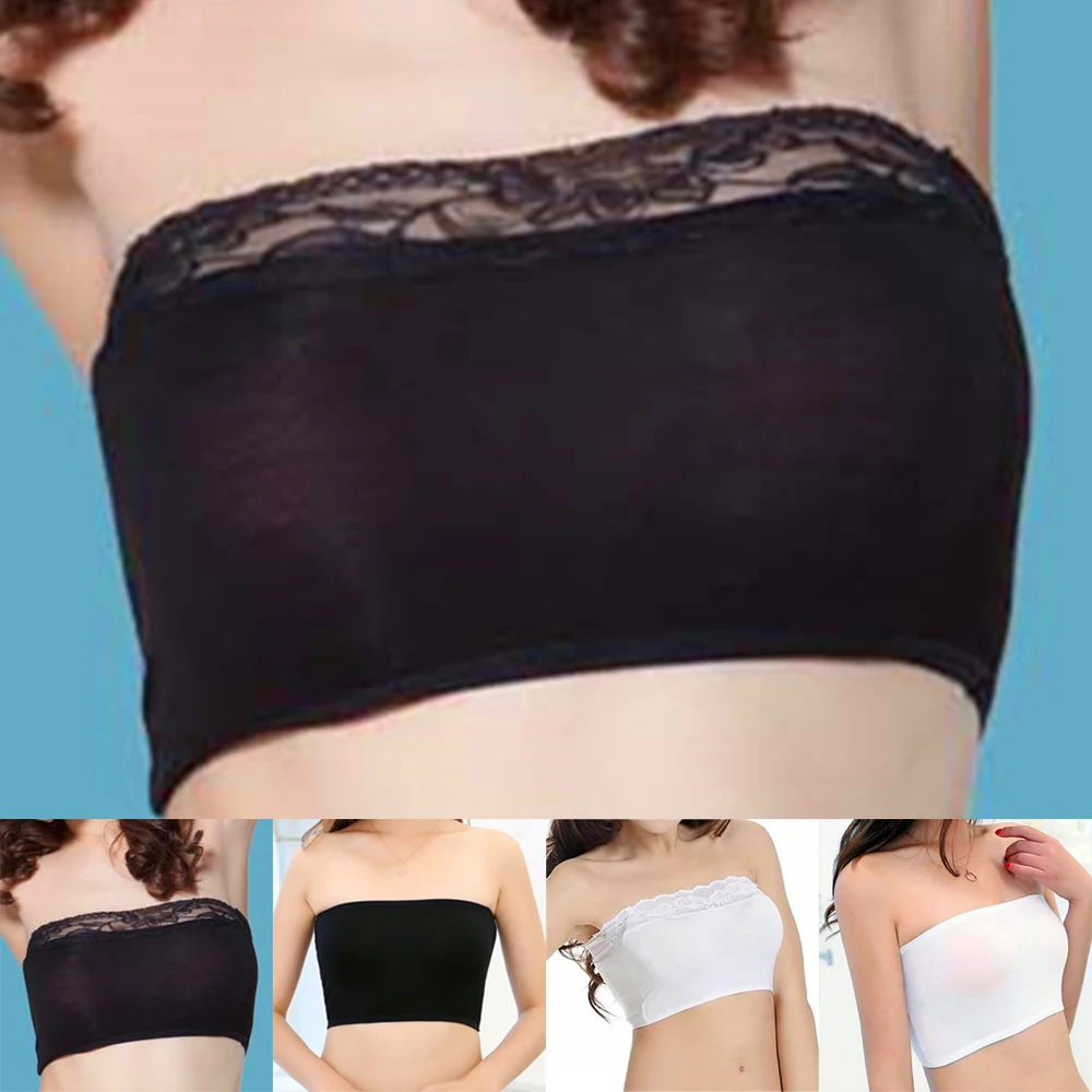 Women Stretch Bandeau Bra Strapless Breathable Crop Tank Tops Camisole Bras Modal Lace Tube Top Base Anti-glare Brand New