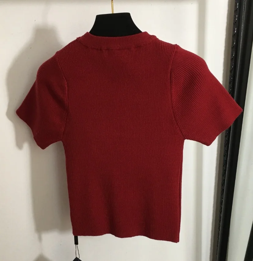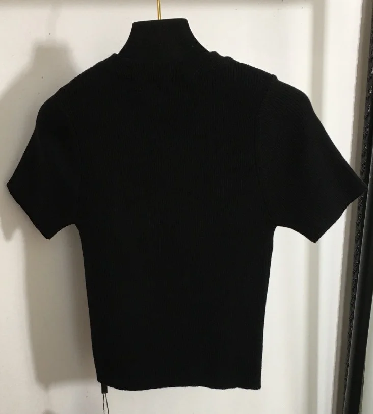 Women’s Jacquard Knitted Top Short Sleeve Basic Solid Color Round Neck Slim Fit Top European and American Style Free Shipping