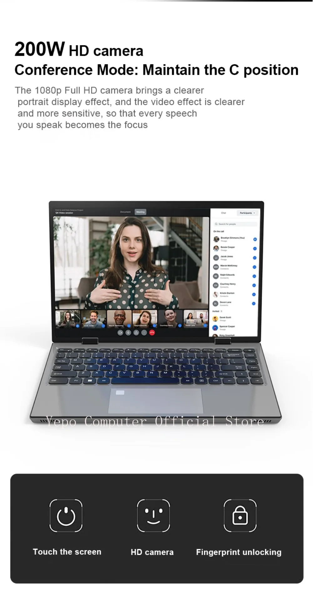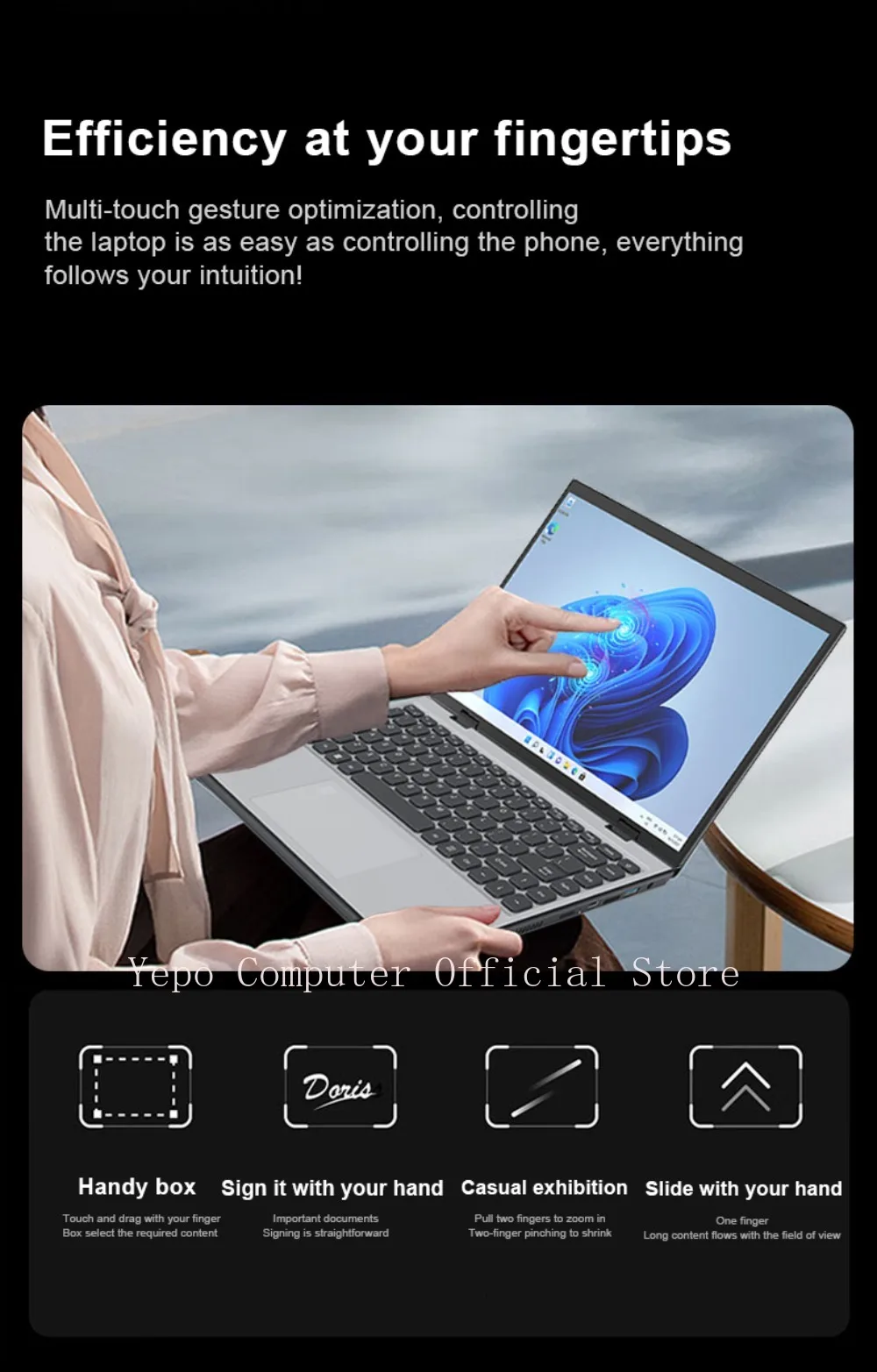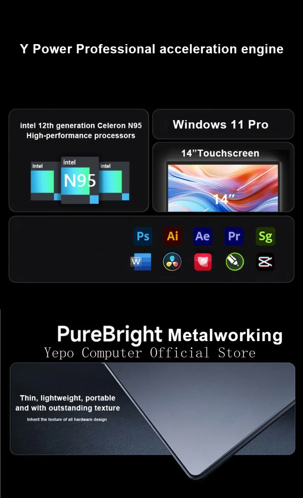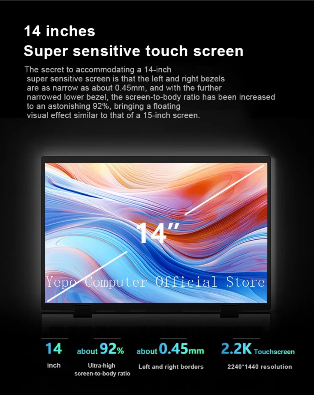 YEPO New 14 “Laptop Intel N95 2.2K HD Touchscreen Windows 11 Pro 16G+2TB DDR4 Foldable 360 ° Fingerprint Unlocking Office PC