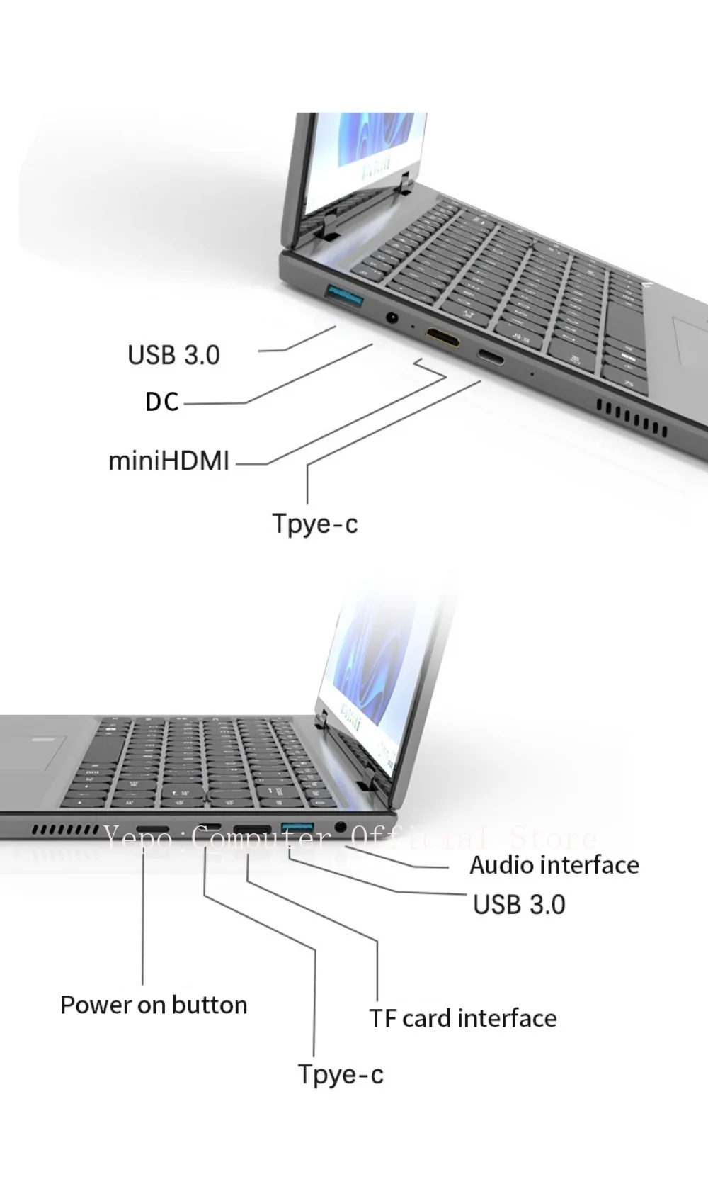 - Port: 3.5 mm Audio Jack,2*USB3.1 Type-C,Mini HDMI-Compatible