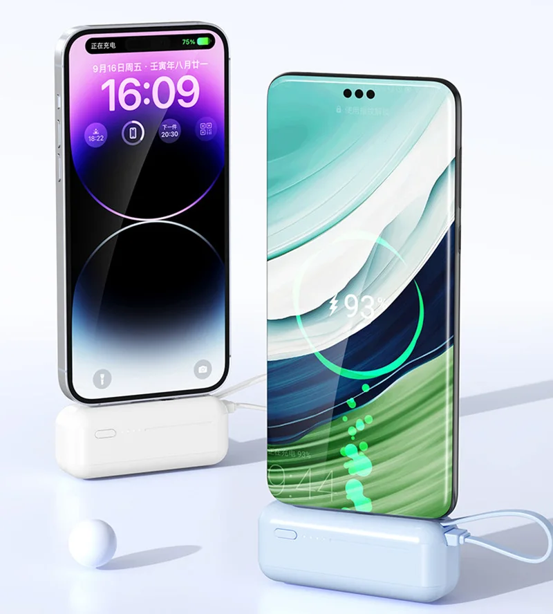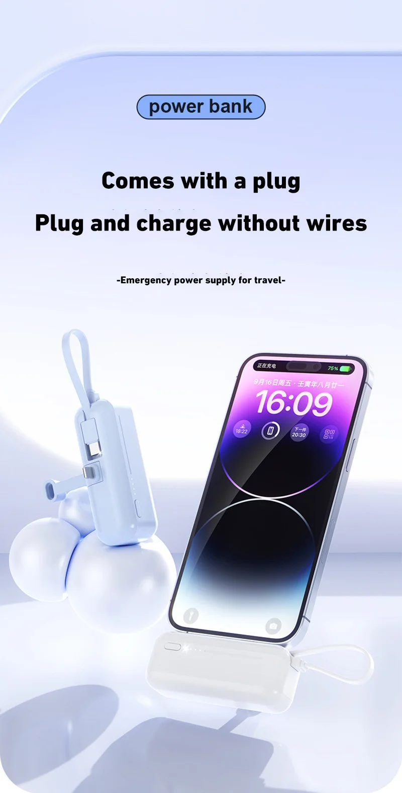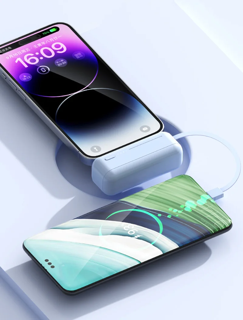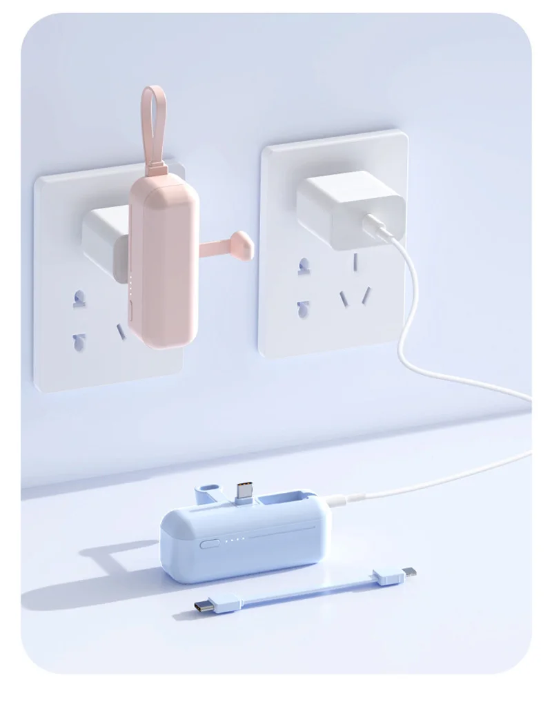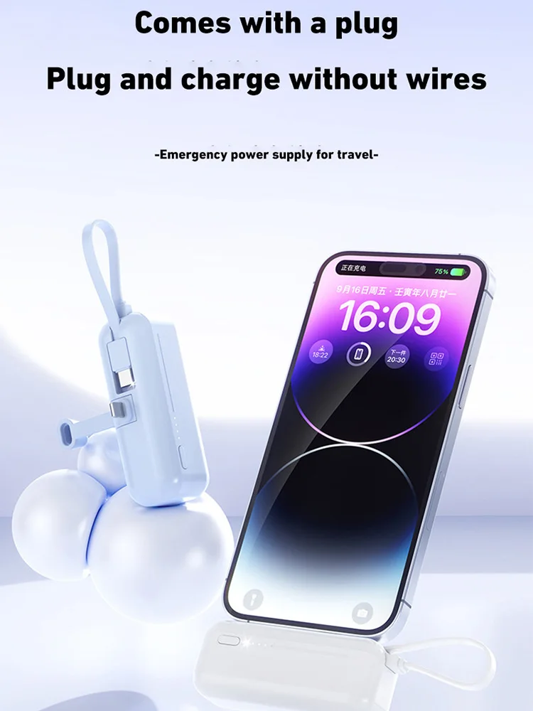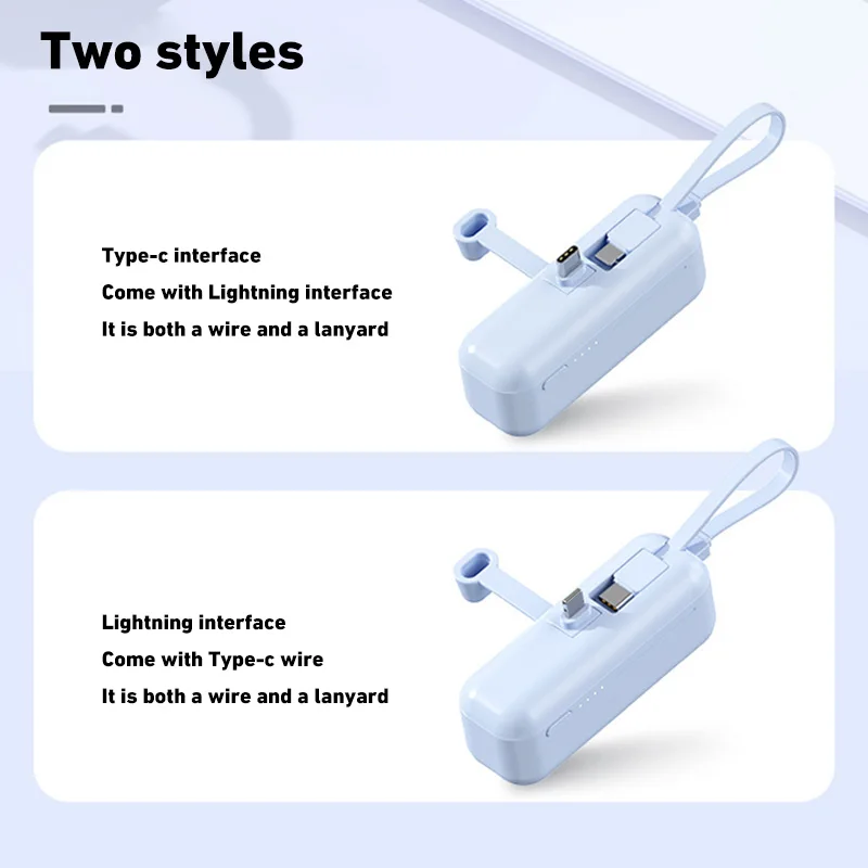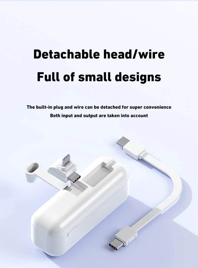 3. 2-in-1 Charging Cable:The two-in-one charging line is both a charging line and a lanyard. Power bank has compact mini size and large battery capacity, easy to carry.