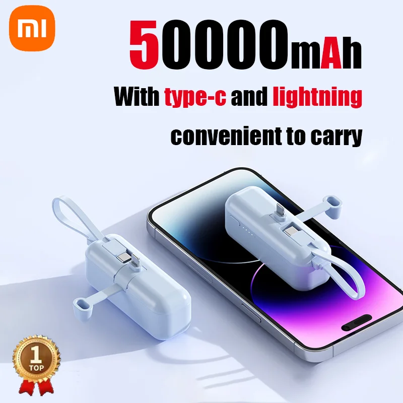 Xiaomi 50000mAh Portable Power Bank Mini Lightweight External Battery for iPhone Samsung Built-in Type C Lightning Plug