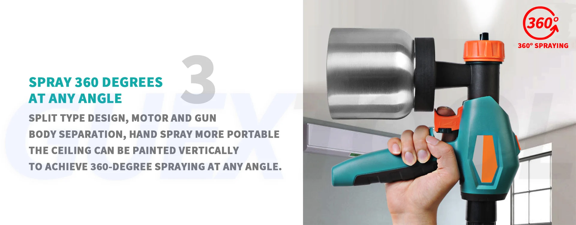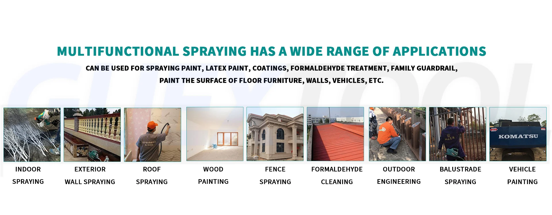 GUYX electric spraying machine can allow paint particles to penetrate into the gaps of the wall, forming a mechanical bite between the paint film and the wall surface, enhancing the adhesion of the paint, and easily overcoming difficult to apply corners, gaps, and uneven areas.