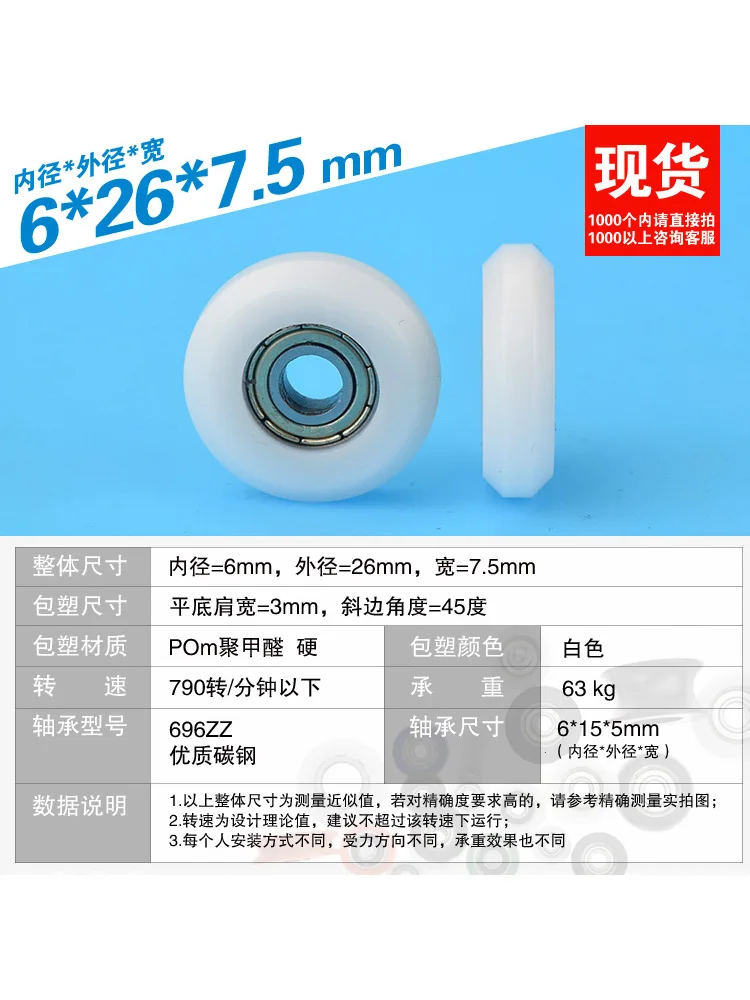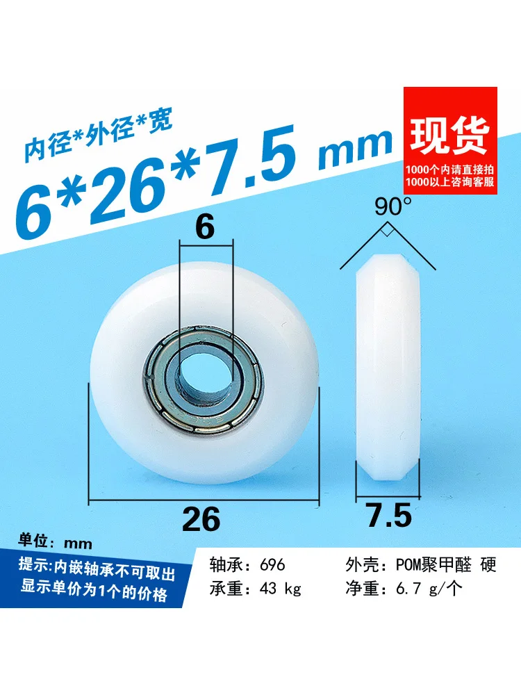 1Pc 6x26x7.5mm convex flat 696 bearing rubber coated pulley plastic coated nylon engraving machine 3D printer furniture