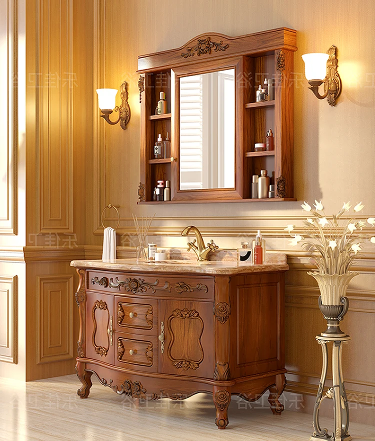 European Bathroom Cabinet Oak Antique Bathroom Cabinet Solid Wood Sink Bathroom Marble Sink Combination Cabinet