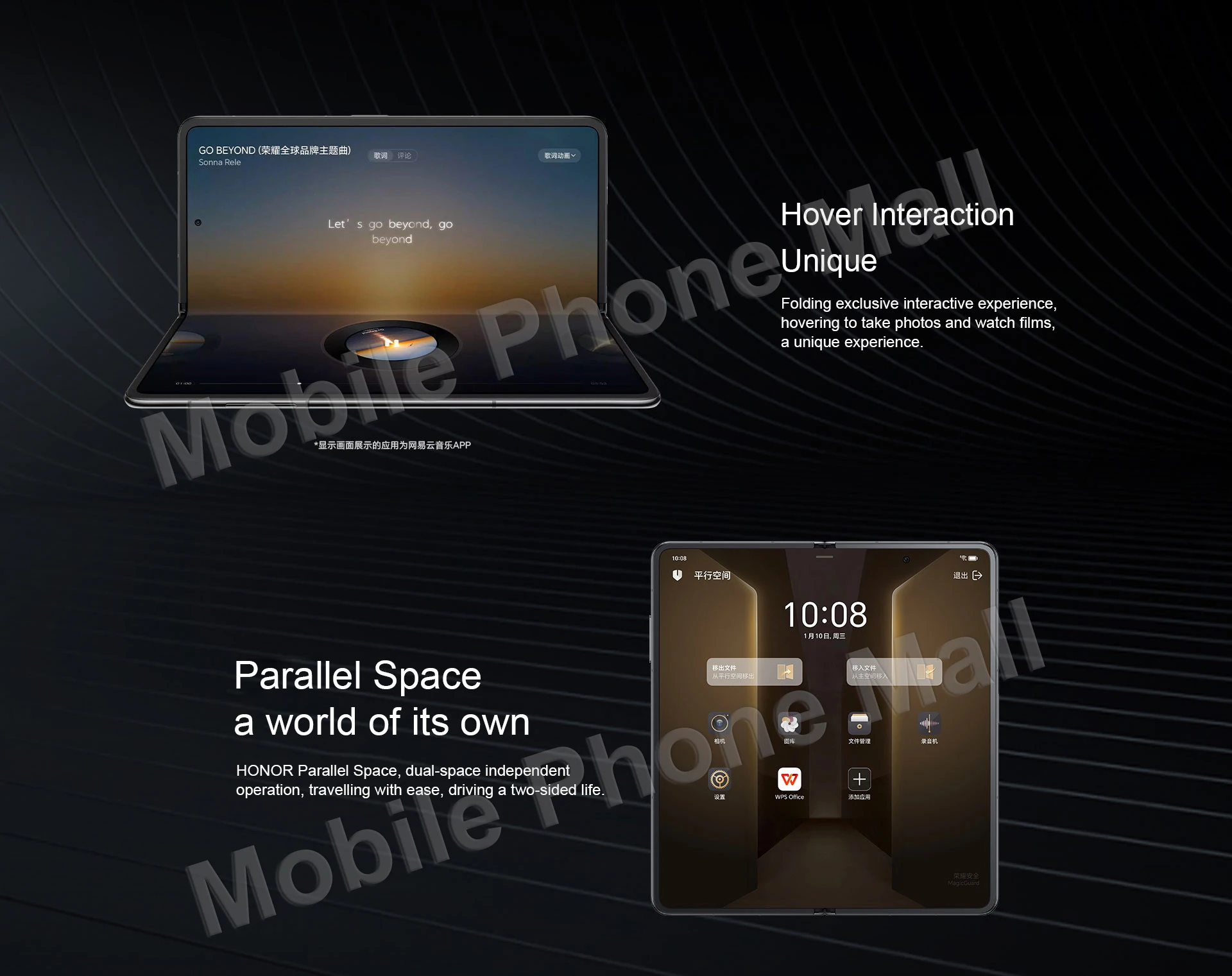 Accessroies: 11 x HONOR Magic V2 RSR 1 x SuperCharge Charger 1 x USB Type-C data cable 1 x Protect Case 1 x Quick Guide 1 x Eject Pin 1 x Warranty Card | Network: 5G NR:n1/n3/n5/n8/n28A/n38/n41/n77/n78 LTE FDD:B1/B2/B3/B4/B5/B7/B8/B12/B17/B18/B19/B20/B26/B28A/B66 TD-LTE:B34/B38/B39/B40/B41 WCDMA:B1/B2/B4/B5/B6/B8/B19 CDMA:BC0 GSM: B2/B3/B5/B8 | |