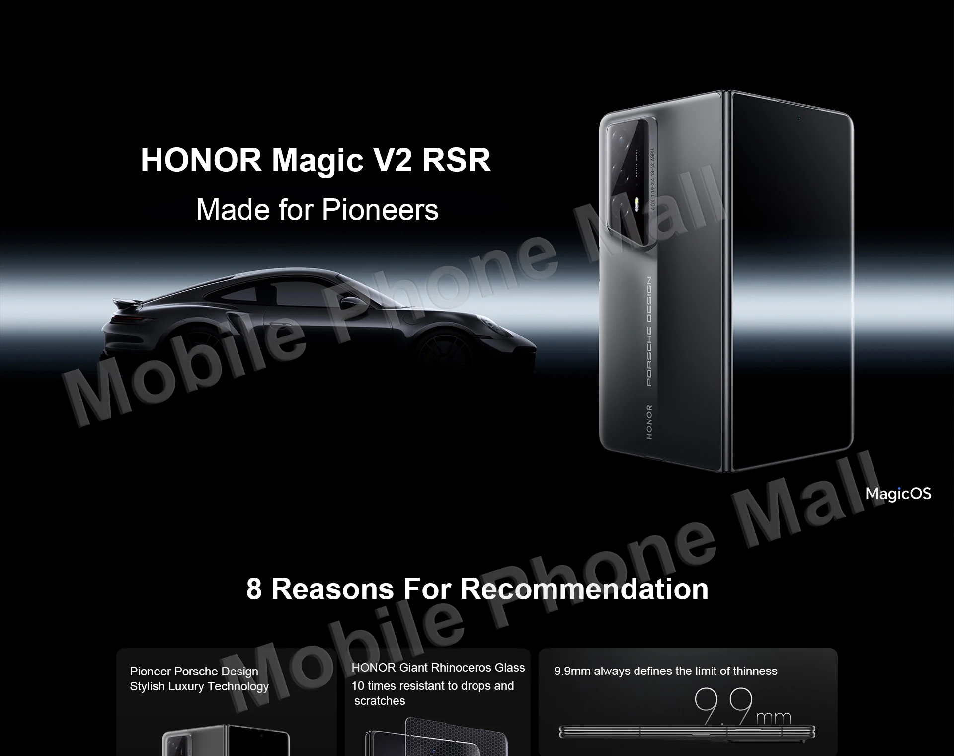 Package Contents | 1 x HONOR Magic V2 RSR 1 x SuperCharge Charger 1 x USB Type-C data cable 1 x Protect Case 1 x Quick Guide 1 x Eject Pin 1 x Warranty Card |