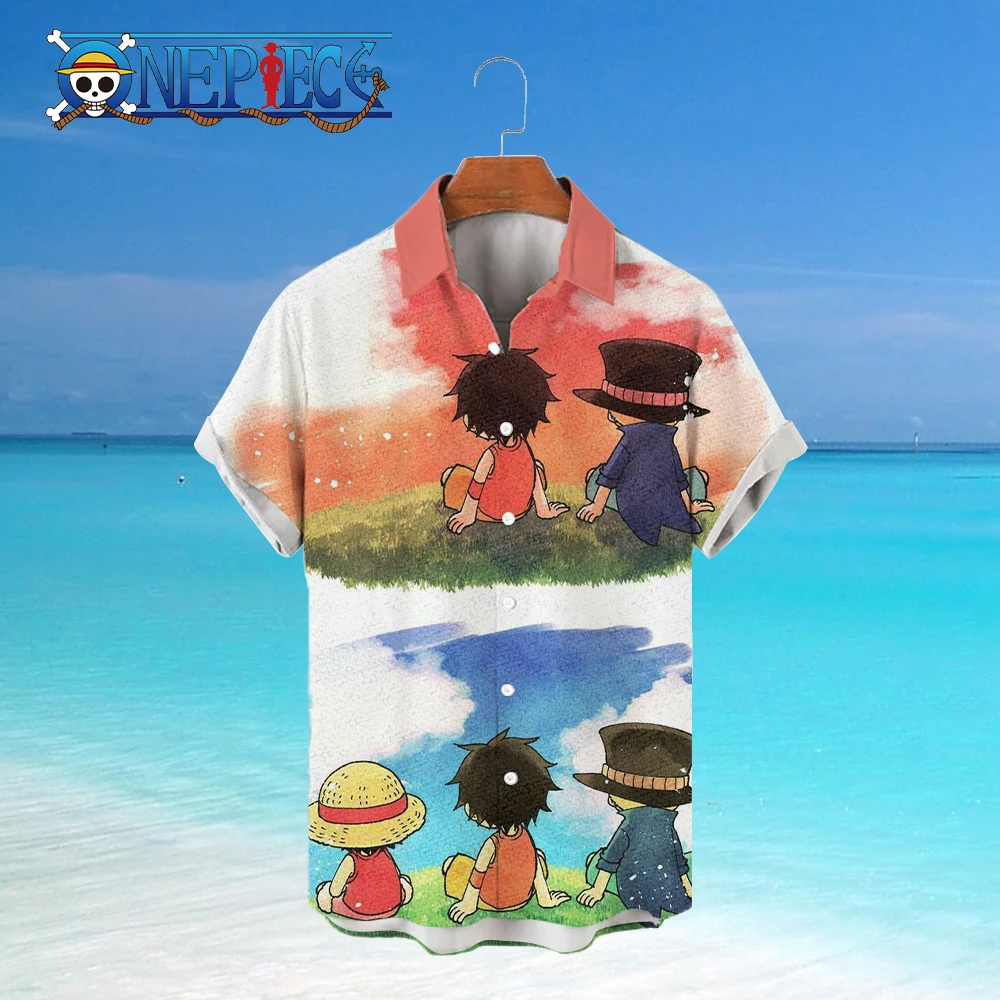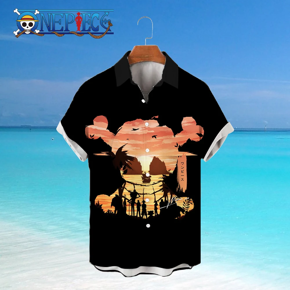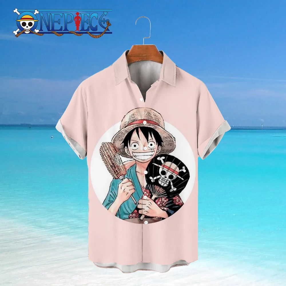 Blouse Fashion Monkey D Luffy Shirts and Blouses Y2k One Piece Tops Anime Men’s Mens Clothes Short Sleeve Elegant Shirt Man 5Xl