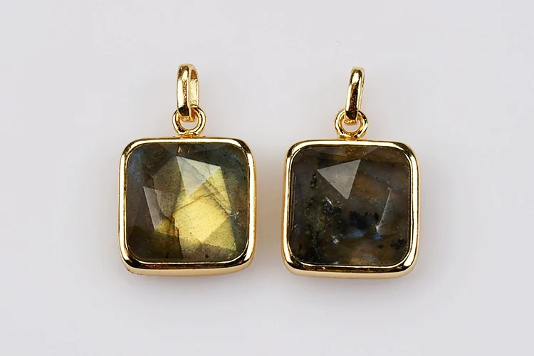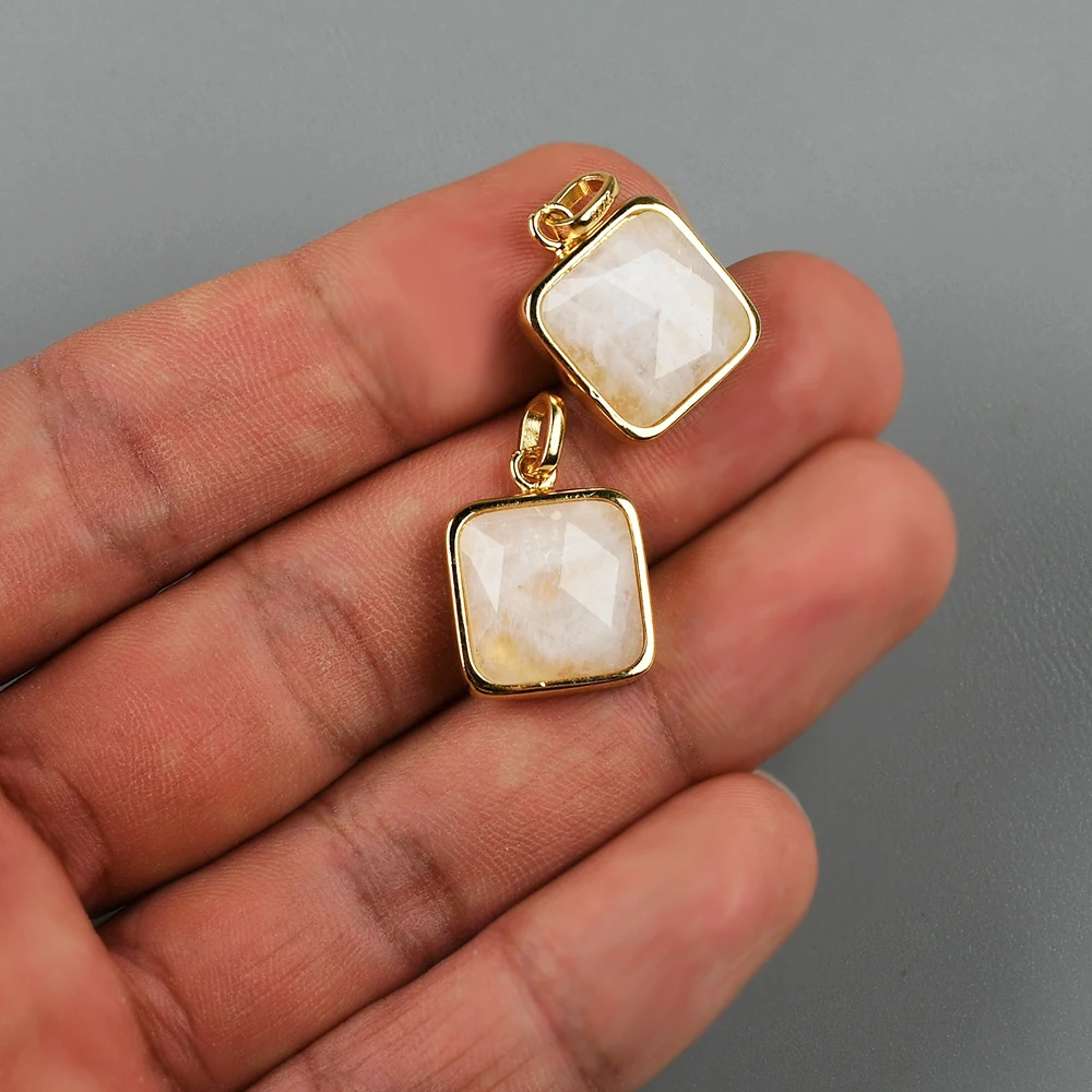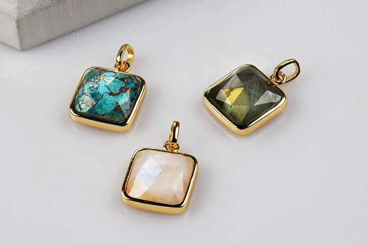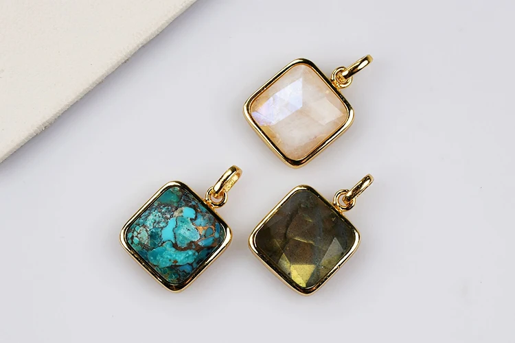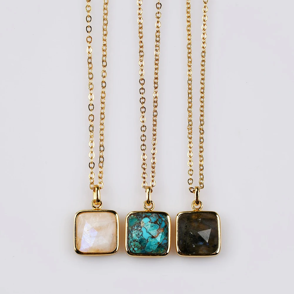 BOROSA Unique Golden Plated Square Copper Turquoise Faceted Pendant for Women Men Crystal Quartz Necklace Jewelry Accessories