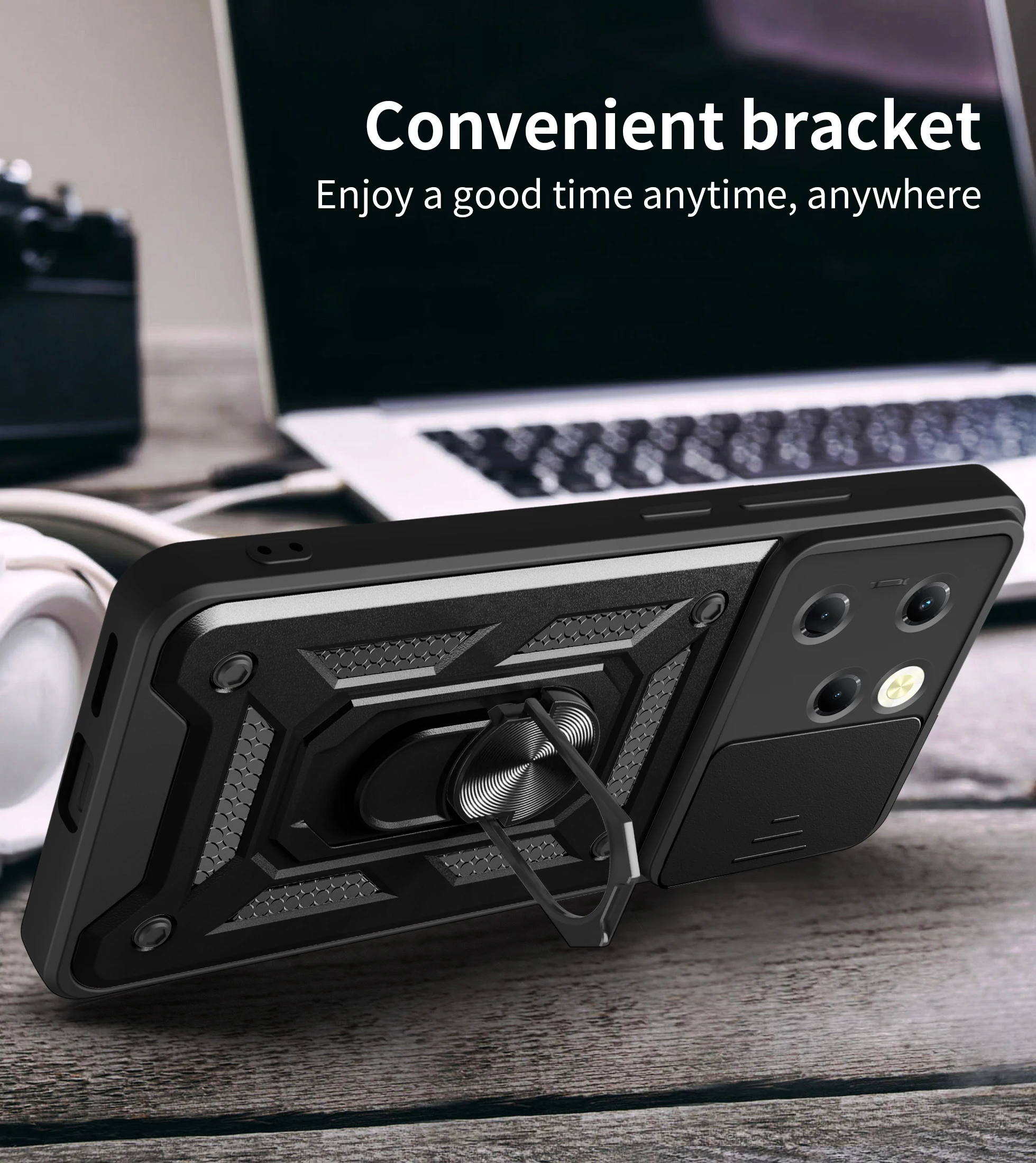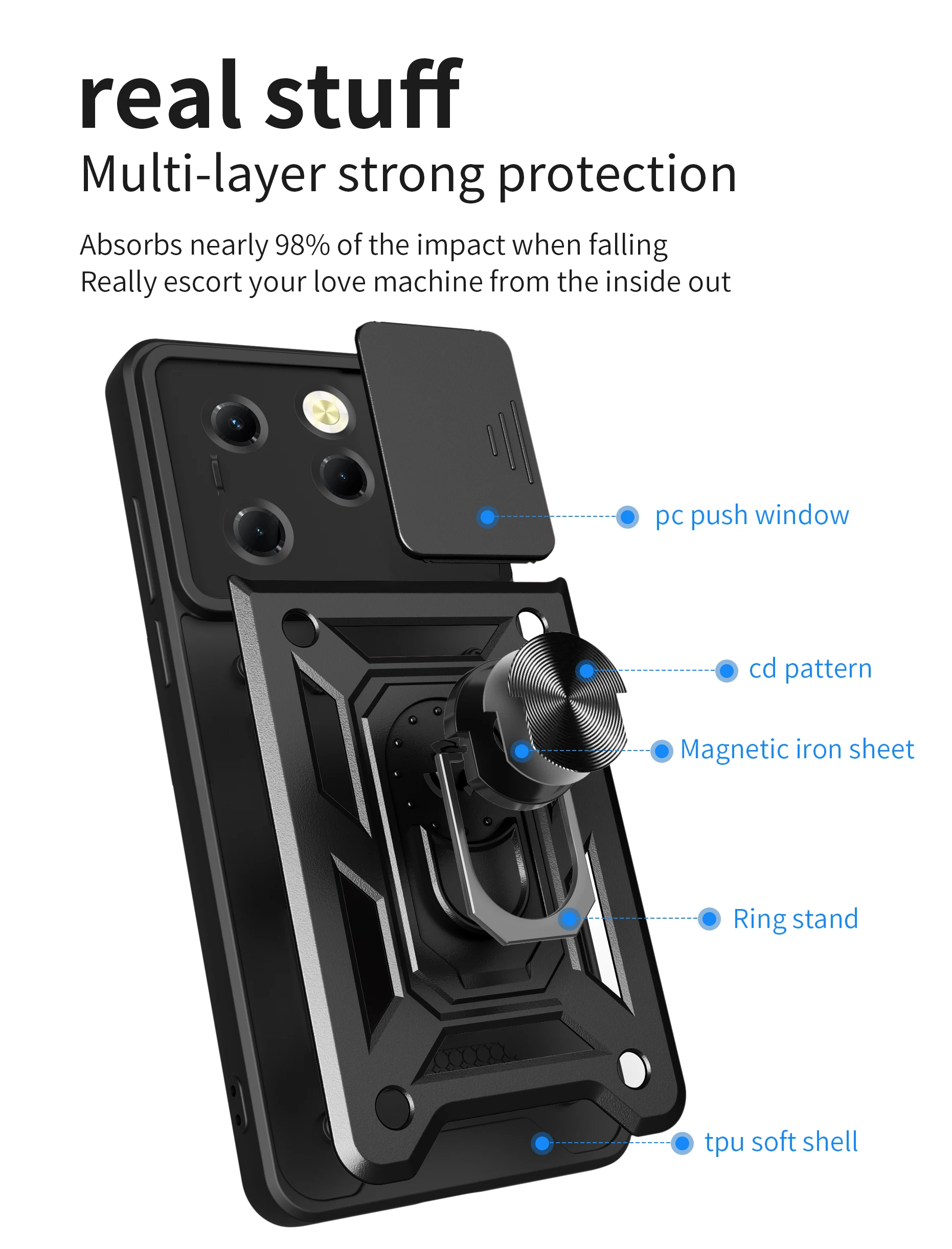 Case for Tecno Spark 20 Pro Slide Camera Car Magnetic Ring Holder Silicone Protection Hard Phone Cover TecnoSpark20Pro KJ6 Coque