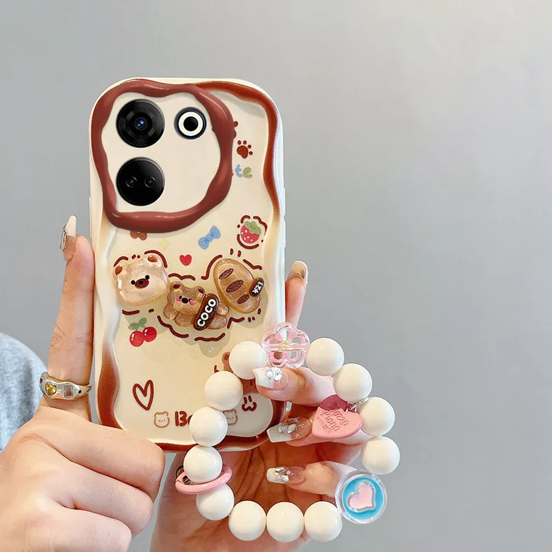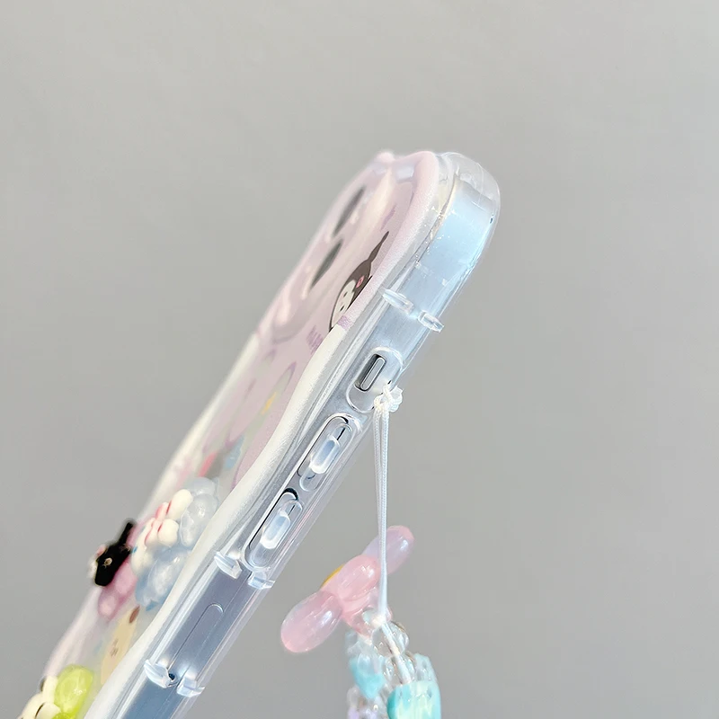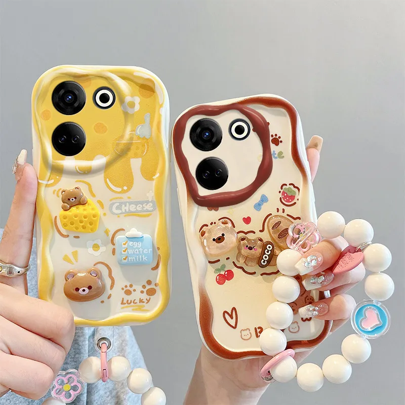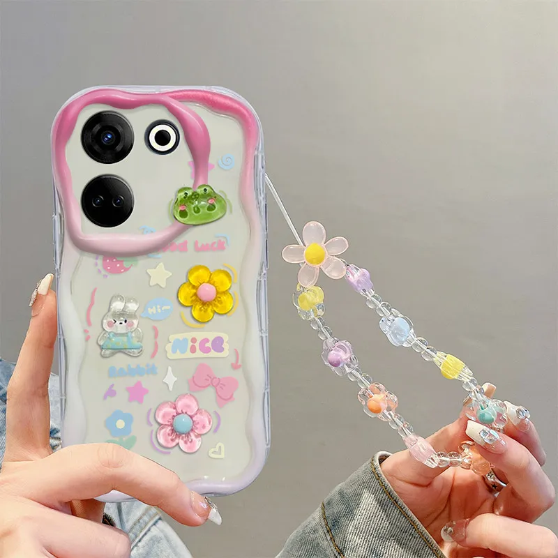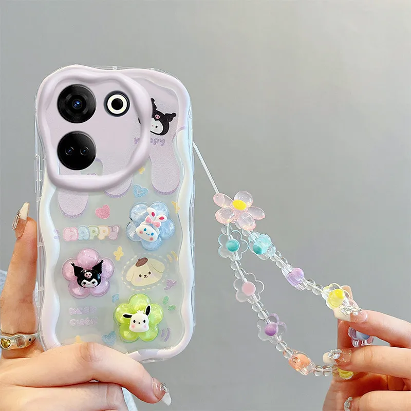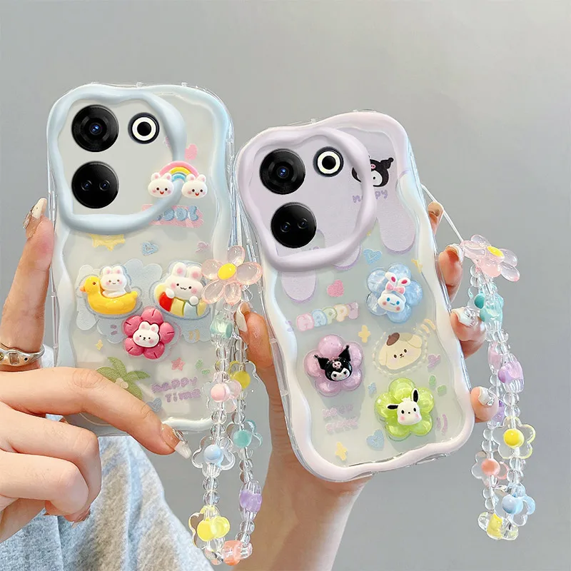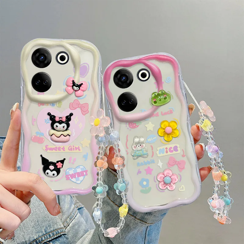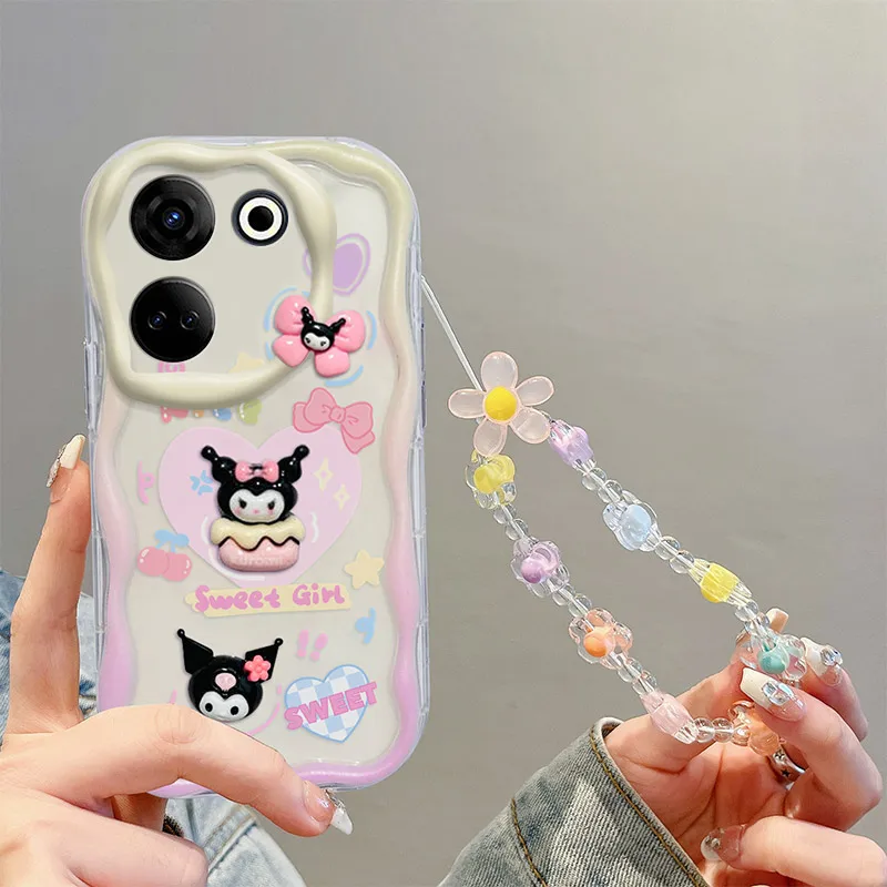 Kuromi Bear Phone Case For Tecno Camon 12 15 16 S 20 Pop 7 8 Spark 10 10C 20 20C 4 5 Pro 8C 9 Go Flowers Wrist Strap Curly Cover