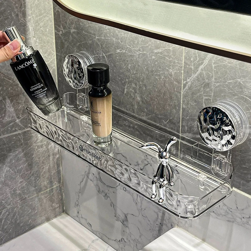 Light Luxury Bathroom Shelf Suction Cup Shampoo Shower Rack Punch-Free Storage Organizer Holder Bathroom Accessories