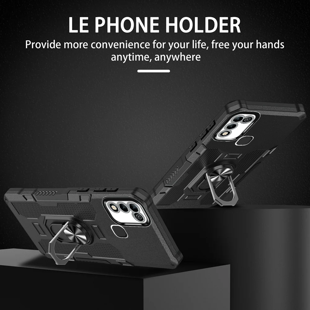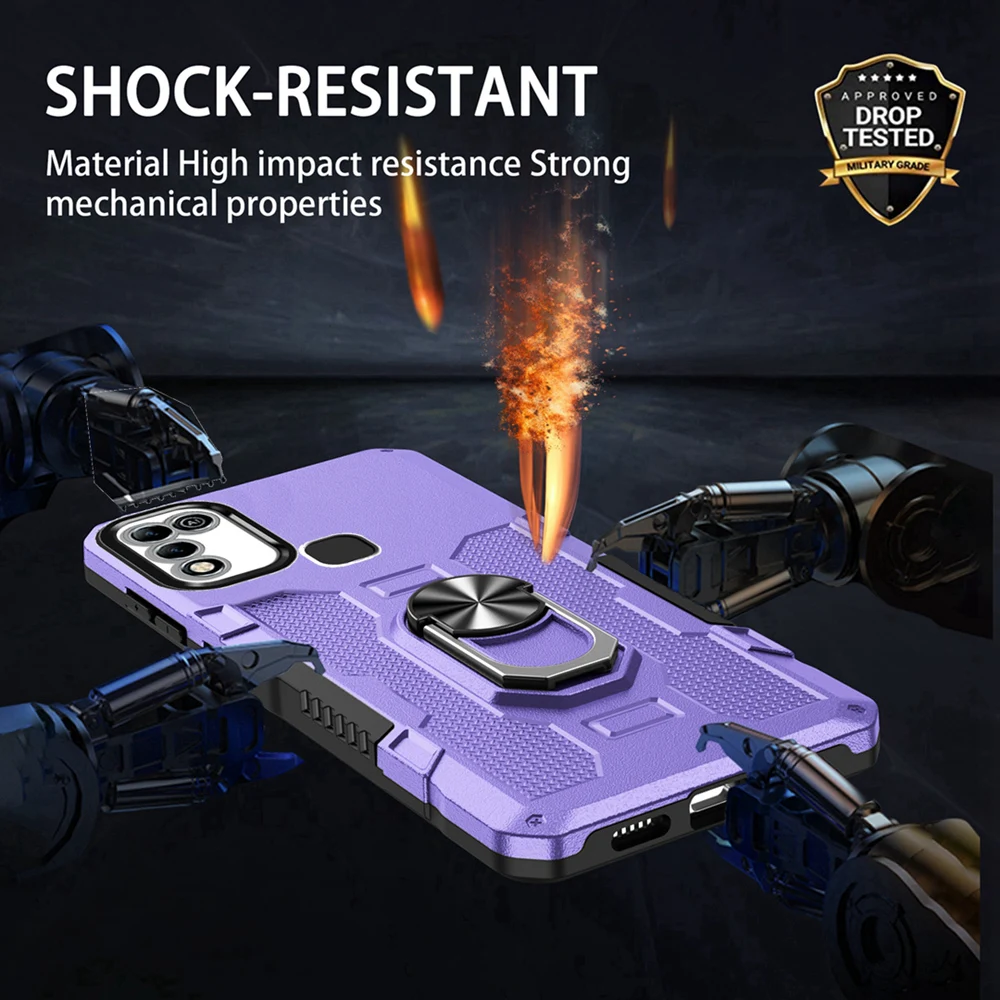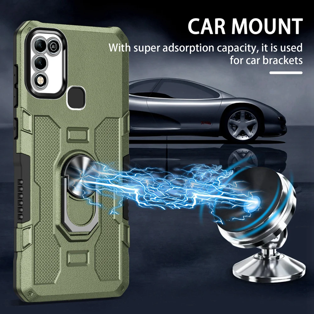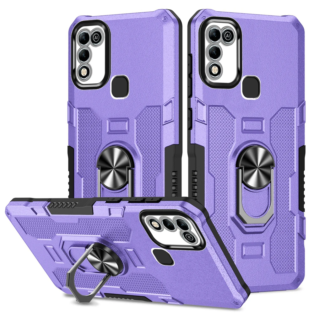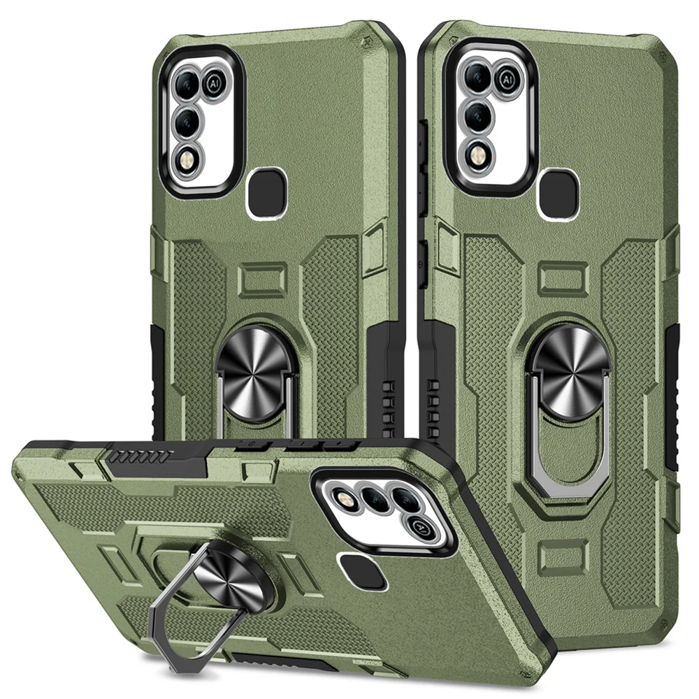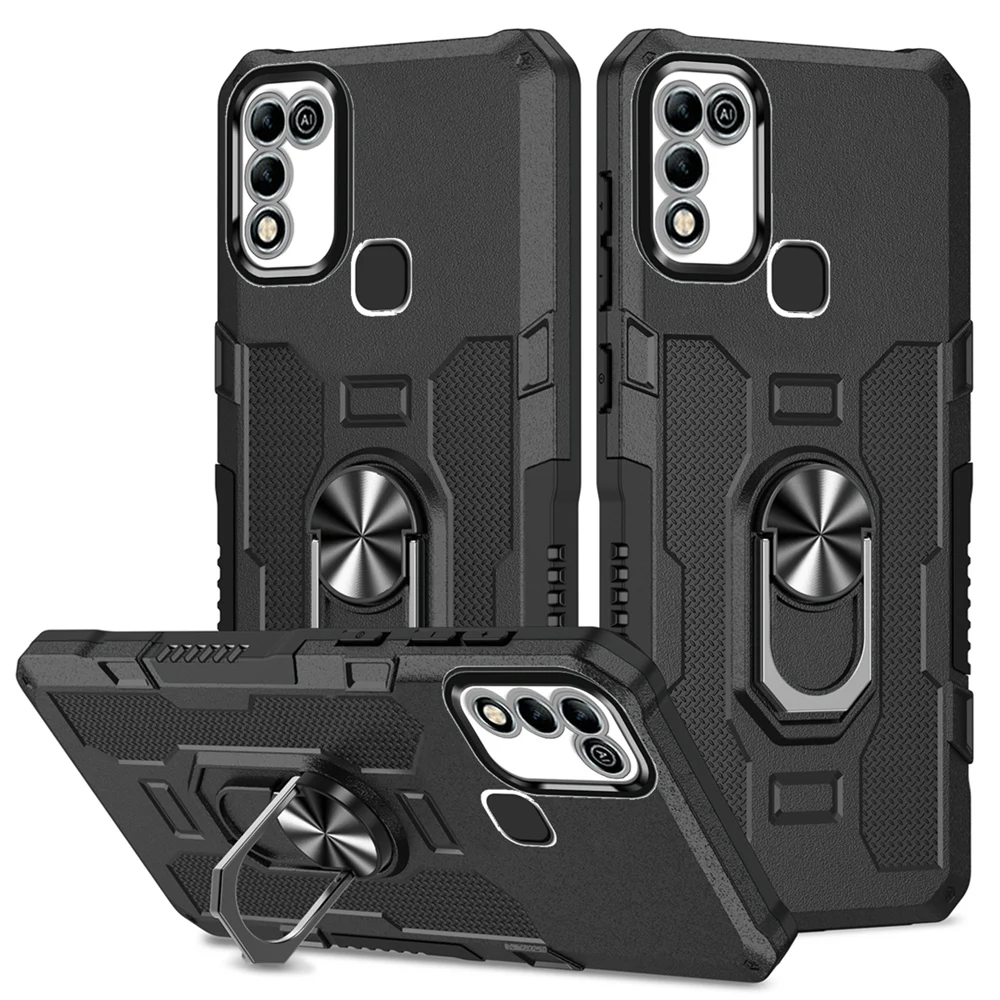 Peatkop Shockproof Armor Case for Infinix Hot 11 Play 10 Play Silicone+PC Metal Ring Stand Phone Back Cover for Hot 9 10 11 Play