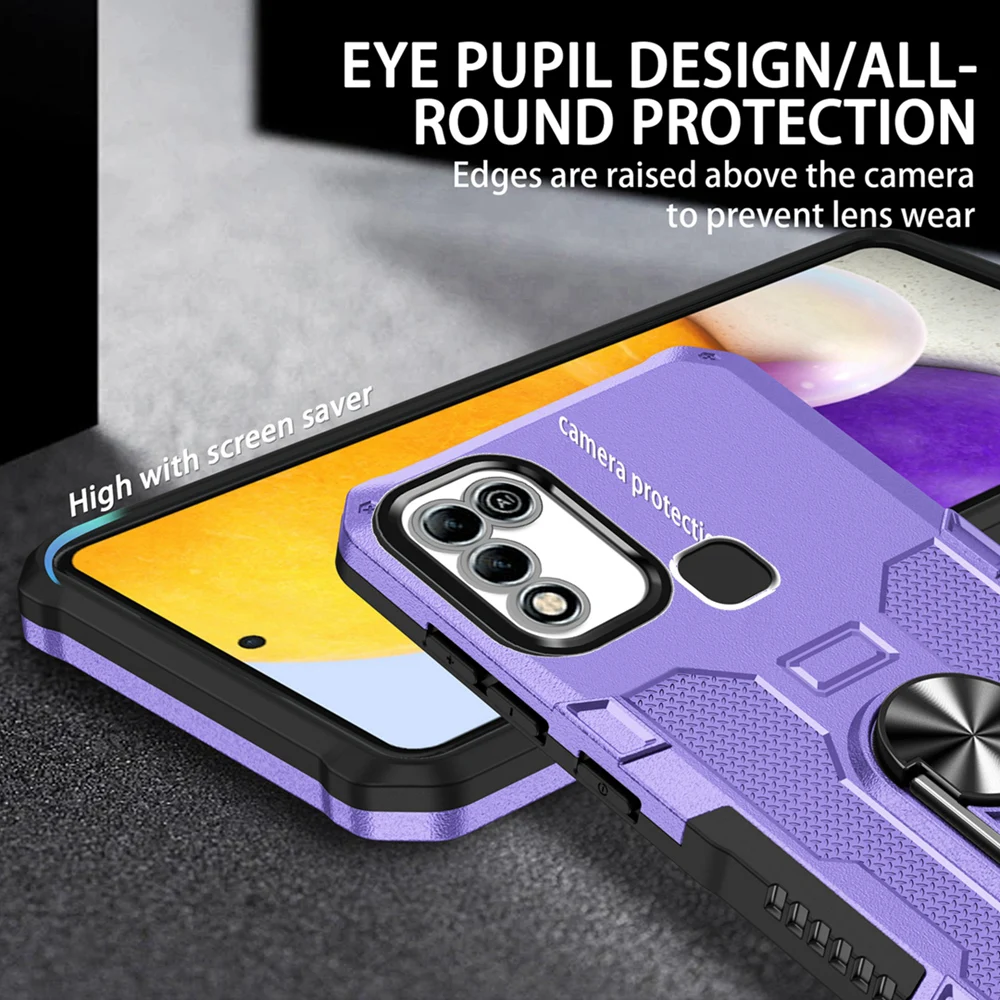 Peatkop Shockproof Armor Case for Infinix Hot 11 Play 10 Play Silicone+PC Metal Ring Stand Phone Back Cover for Hot 9 10 11 Play