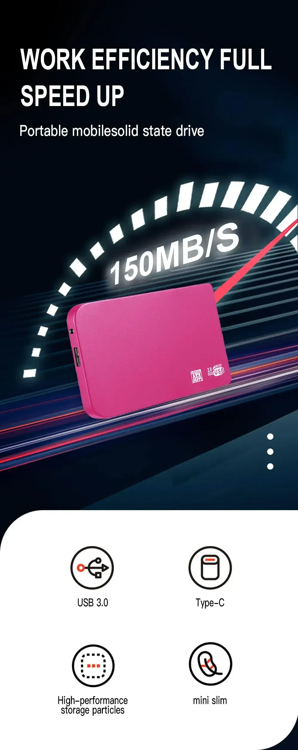 Portable SSD 1TB High-speed 2TB External SSD Hard Drive USB3.0 Type-C Drive for Laptop/PC/Phone Mobile Hard Disk Storage Disk