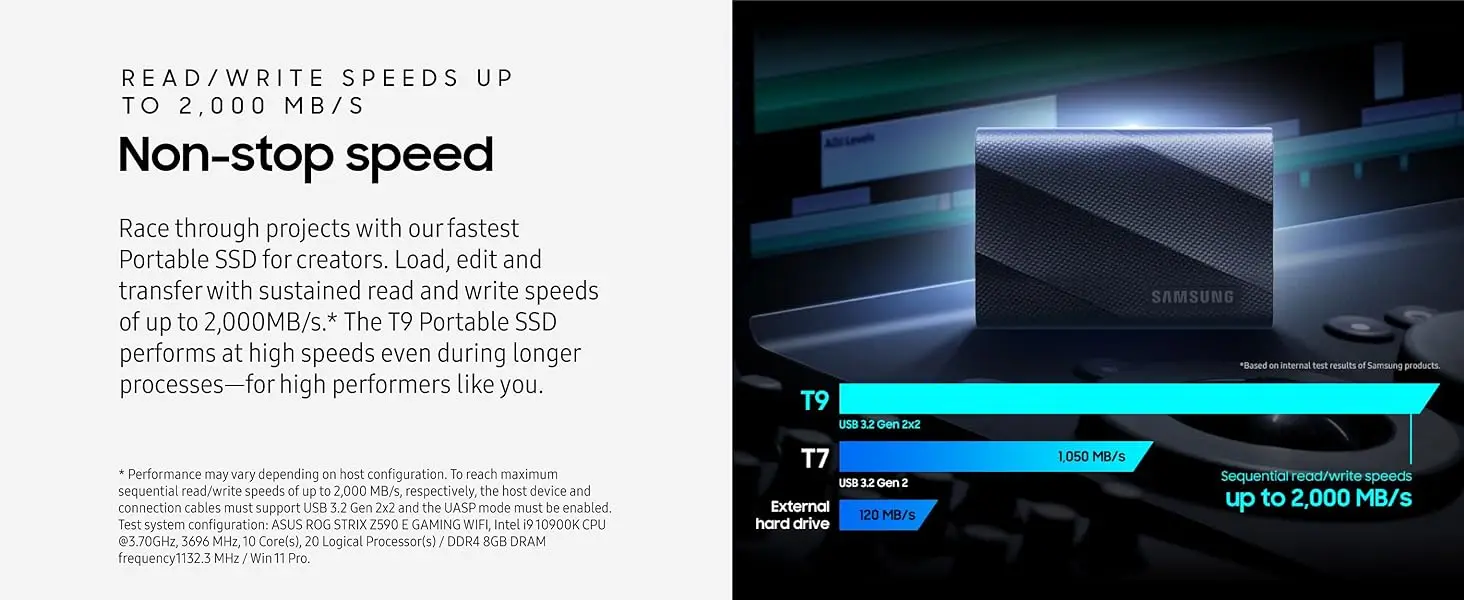 SAMSUNG T9 Portable SSD 1TB, 2TB USB 3.2 Gen 2×2 External Solid State Drive, Seq. Read Speeds Up to 2,000MB/s for Gaming