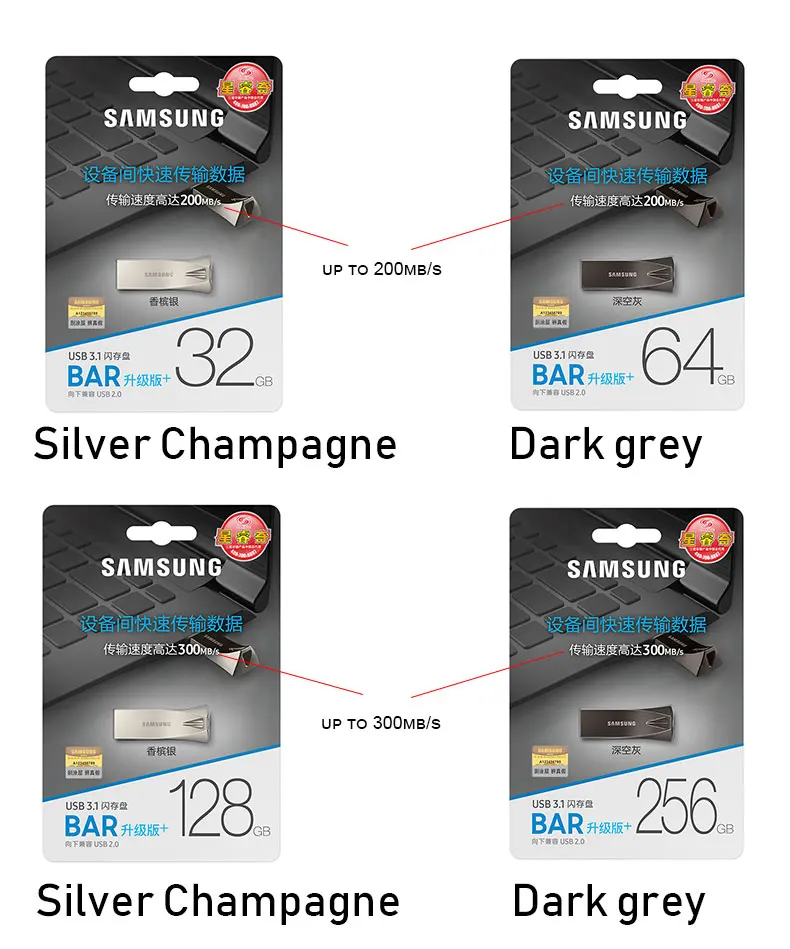SAMSUNG USB Flash Drive Disk 16GB 32GB 64GB 128GB 256GB USB 3.1 Metal Mini Pen Drive Pendrive Memory Stick Storage Device U Disk