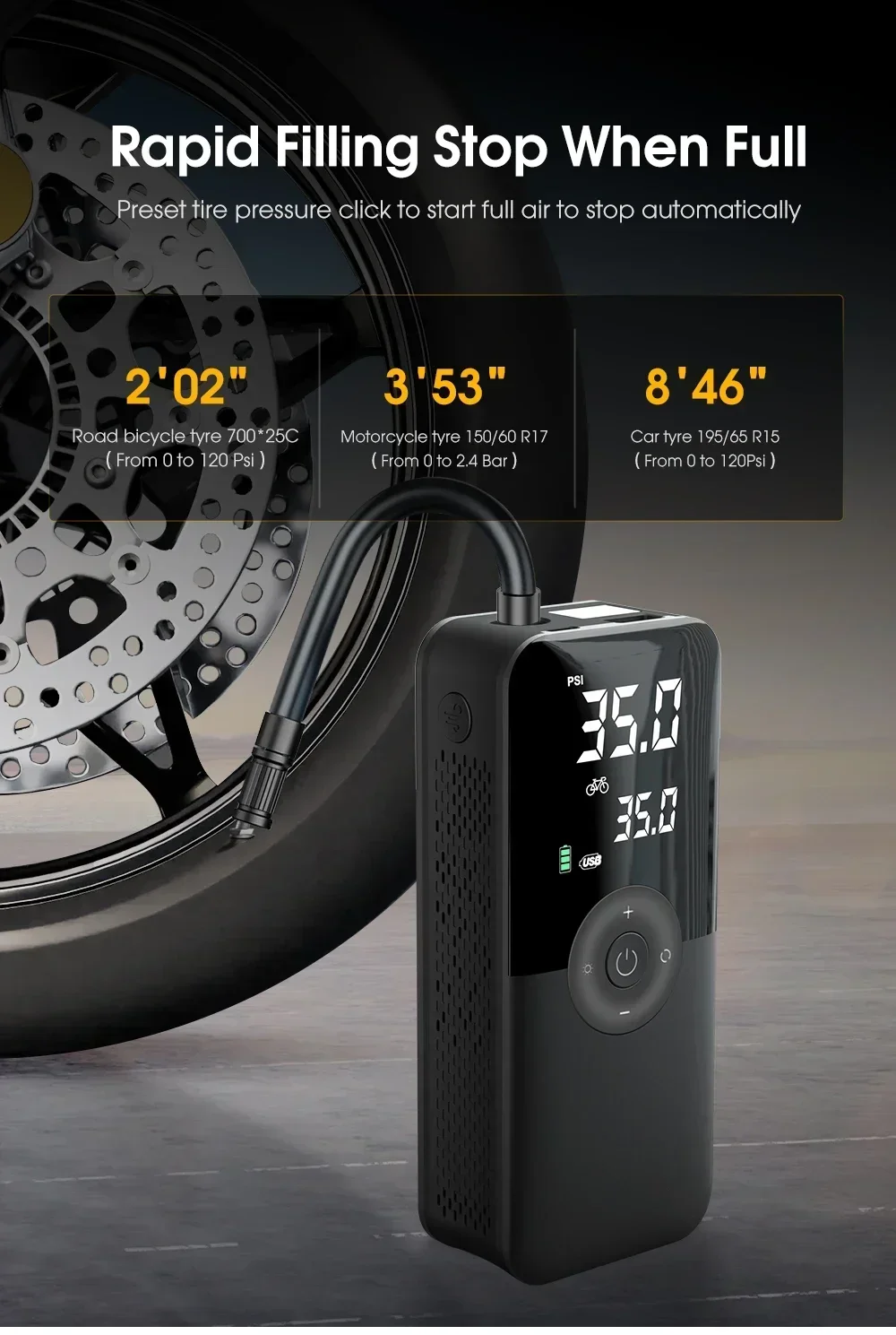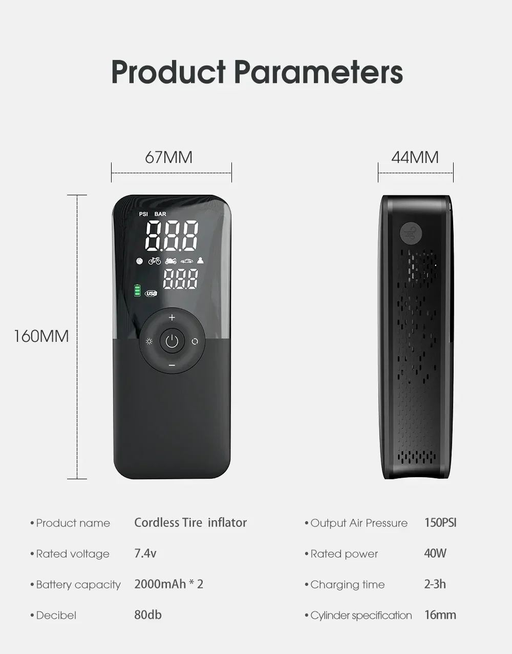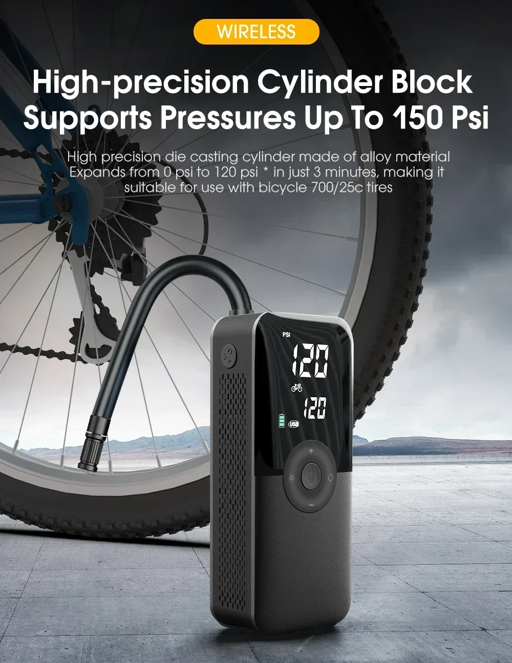 Rechargeable Air Compressor 150psi Portable Electric Tire Inflator For Car Bicycle Motorcycle Mini Air Pump Tire Air Injector