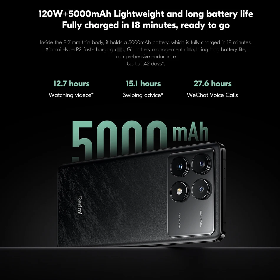 > Battery ——— 5000mAh battery (type), Support 120W Fast Charging