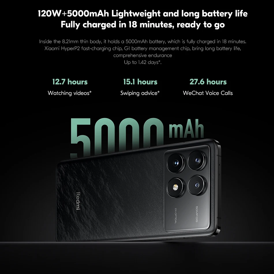 China Version Redmi K70 Pro , Qualcomm Snapdragon 8 Gen 3, 50MP main camera, 120Hz 2K Chinese Display.