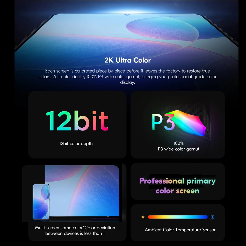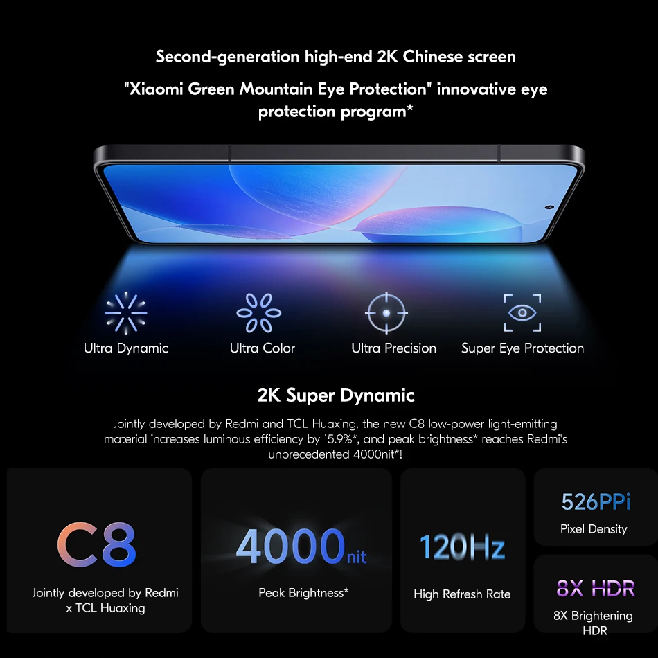 > Display ———- 6.67" 120Hz 2K Chinese Display; 3200×1440 screen resolution; Up to 2160Hz Touch Sampling Rate