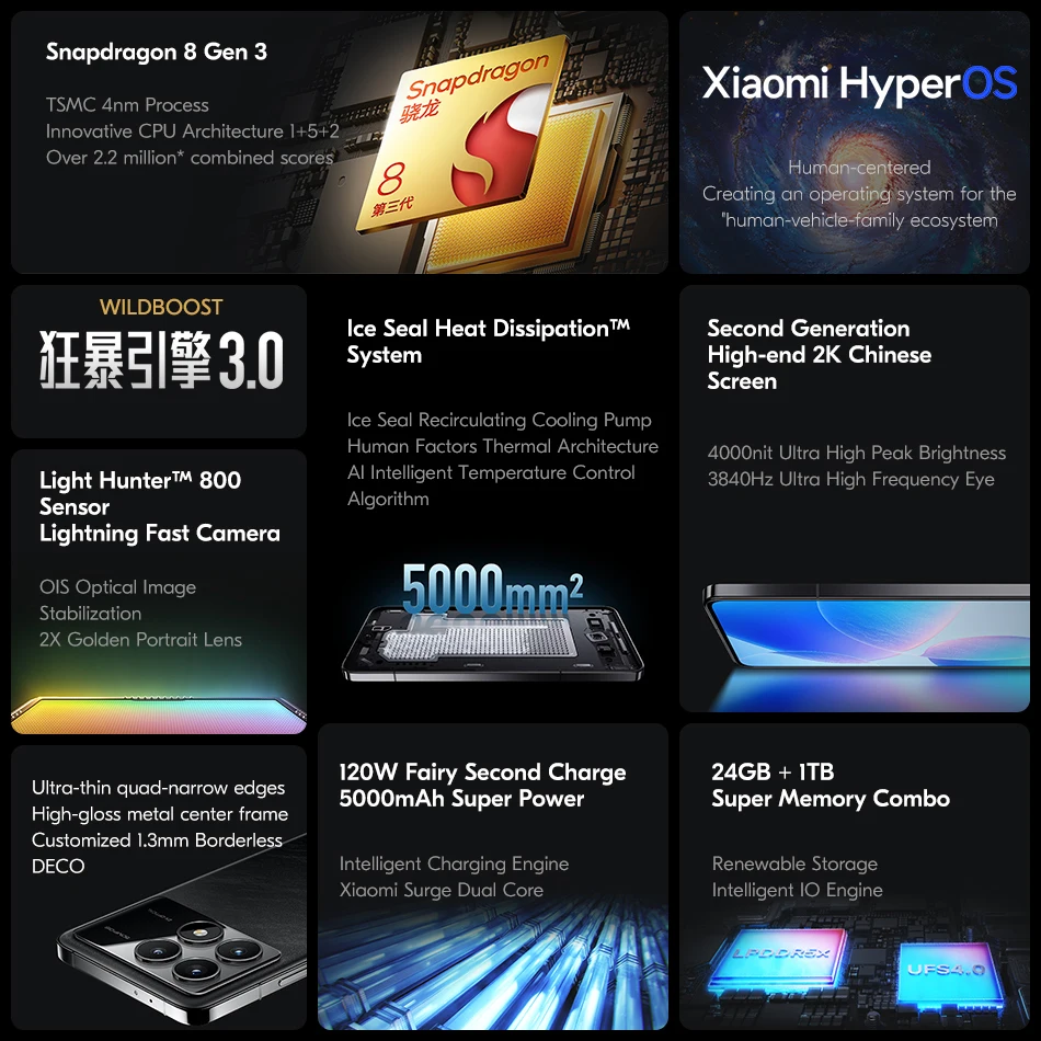 Snapdragon 8 Gen 3, Xiaomi HyperOS, 120W Fast Charging