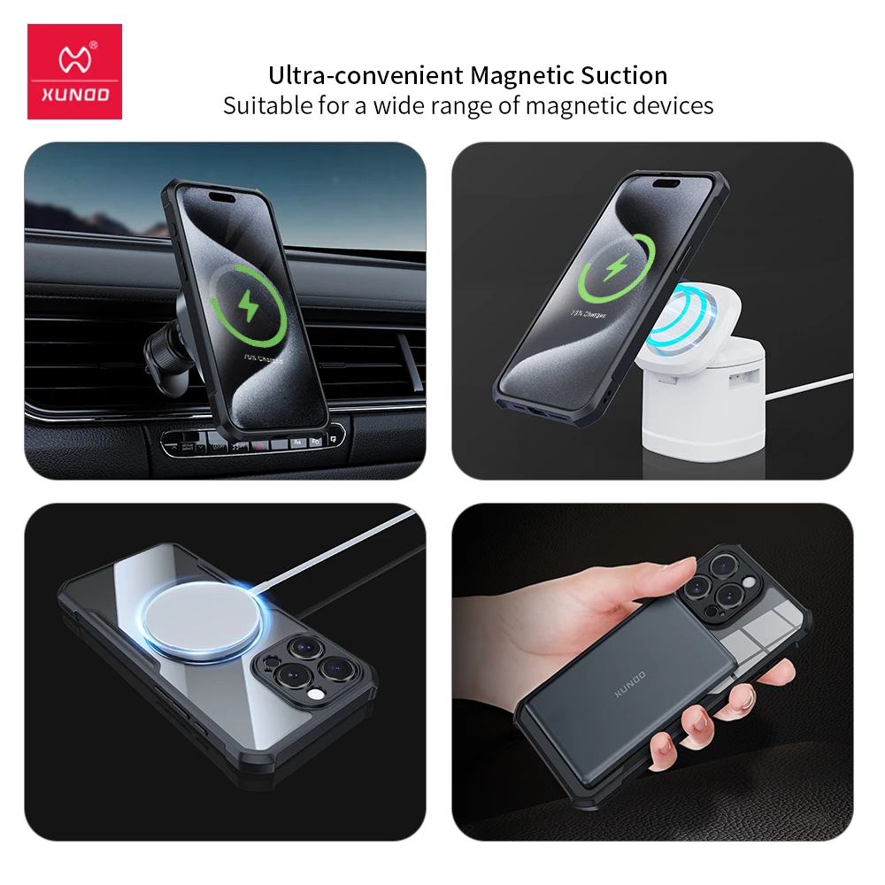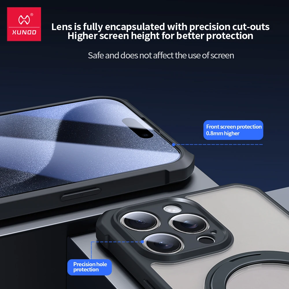 XUNDD For iPhone 16 Pro Max Magnetic Holder Case For iPhone 15 14 13 Pro Max 16 Plus Airbag Shockproof Camera Protetion Cover