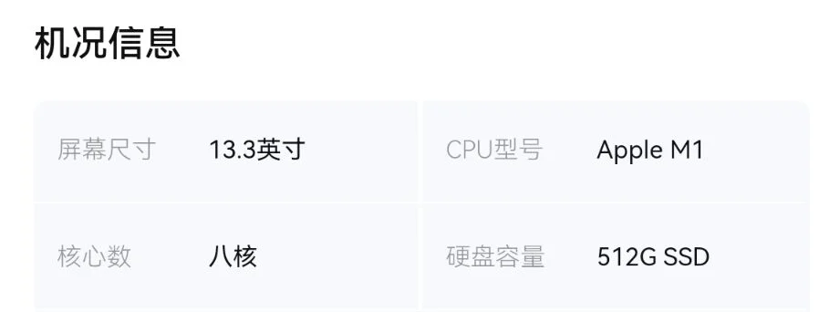 Apple 13 inch MacBook Air (M1) 8GB 512G SSD Deep Space Gray (95% New)