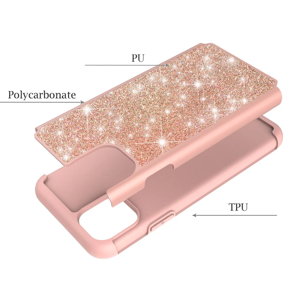 200pcs 2 In1 TPU+PC Bling Powder Phone Cover for iPhone 11 Pro MAX Glitter Phone Cases