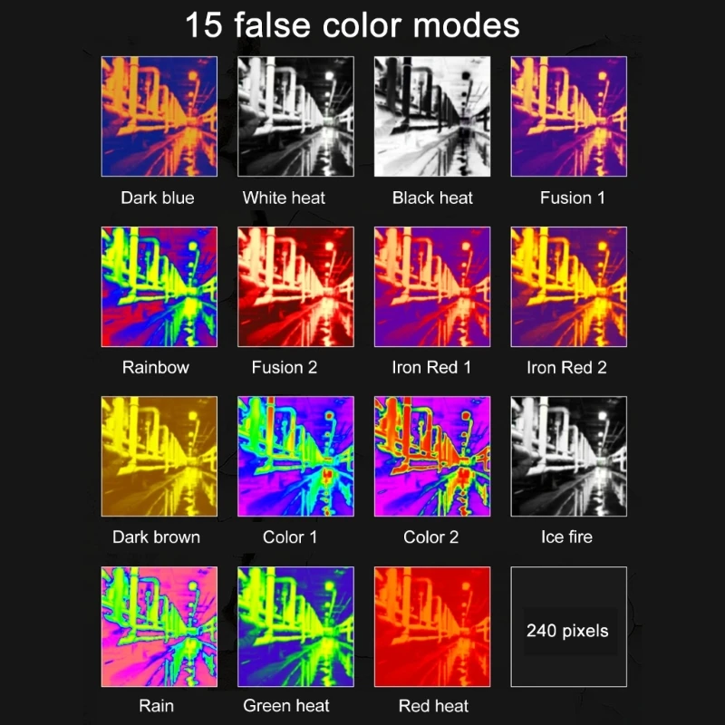 This handheld thermal imager boasts a 240×240 display with a 25Hz frame rate, cutting edges Images stabilization technology, and 15 color palettes, ensuring clear and stable visuals even in challenging environment.