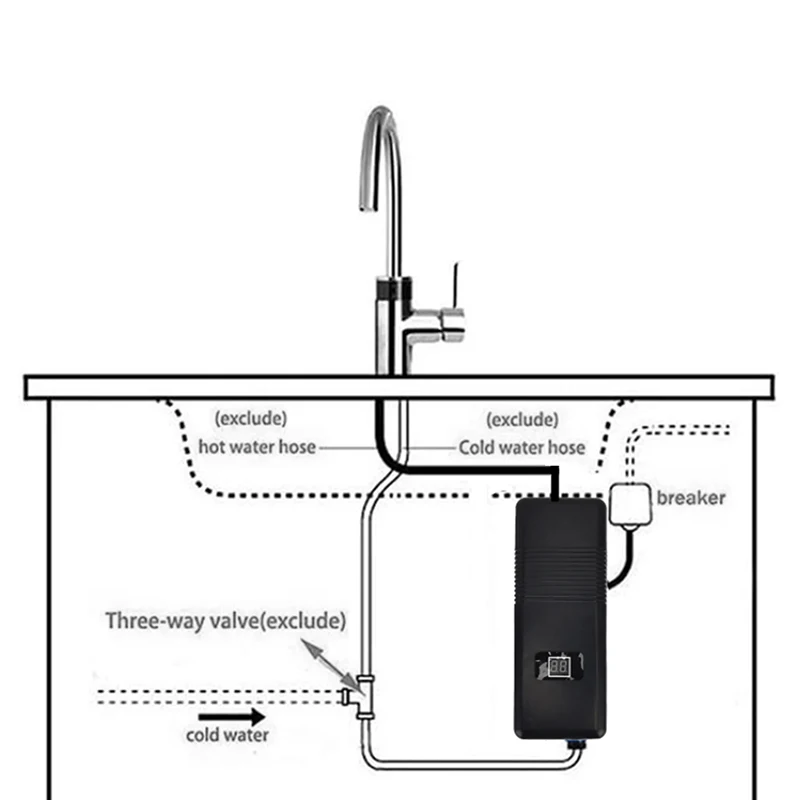 Installation environment requirements: kitchen, bathroom, toilet, wire requirements 2.5mm²; circuit breaker switch greater than C32; water heater requires vertical installation, can not be installed horizontally.