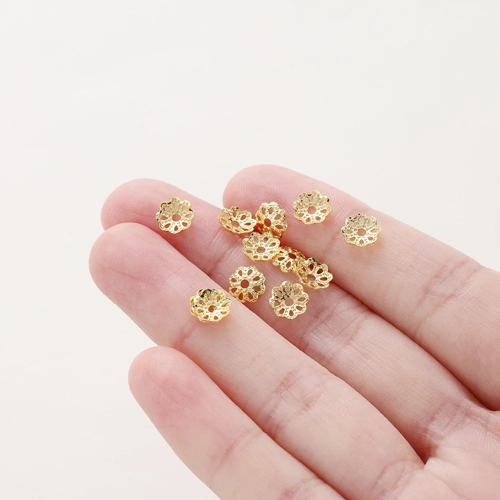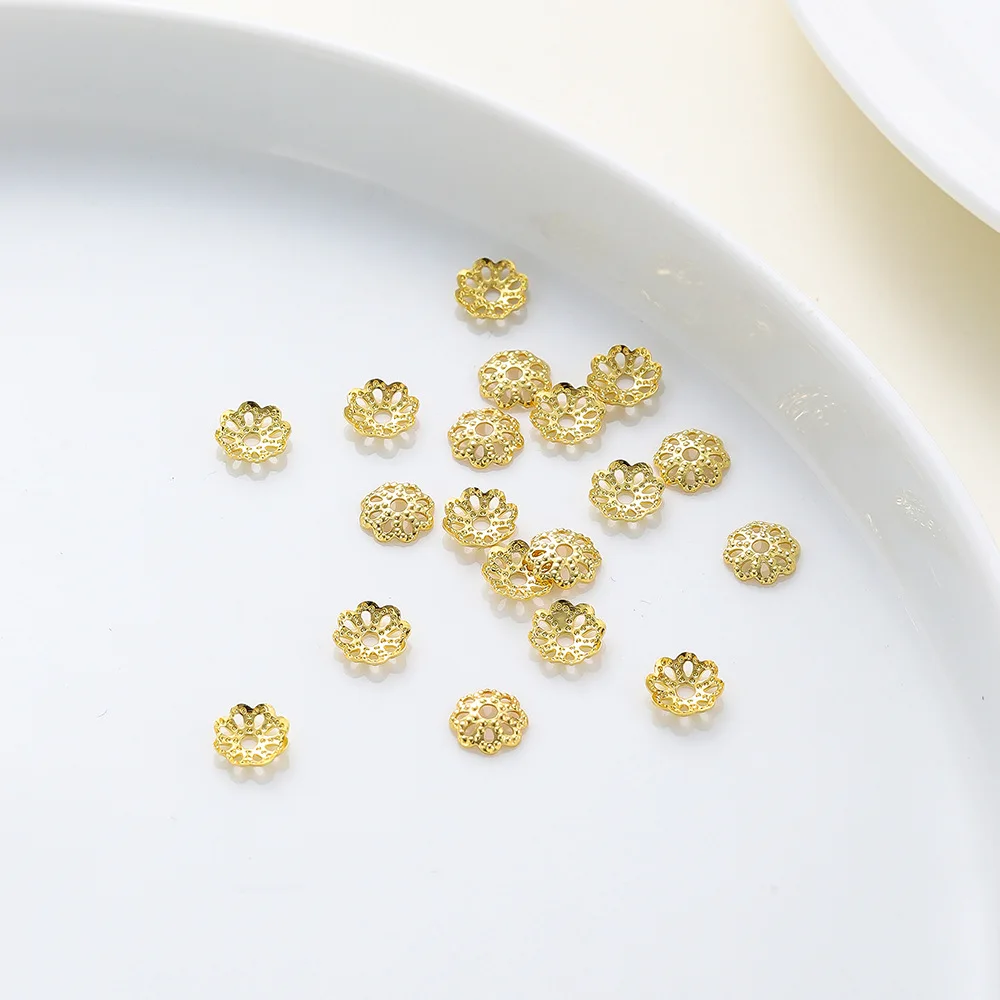 50Pcs Hot Selling Copper Bag Real Gold Hollow Leaf Pattern Flower Holder Hand String Spacer DIY Jewelry Hat Holder Wholesale