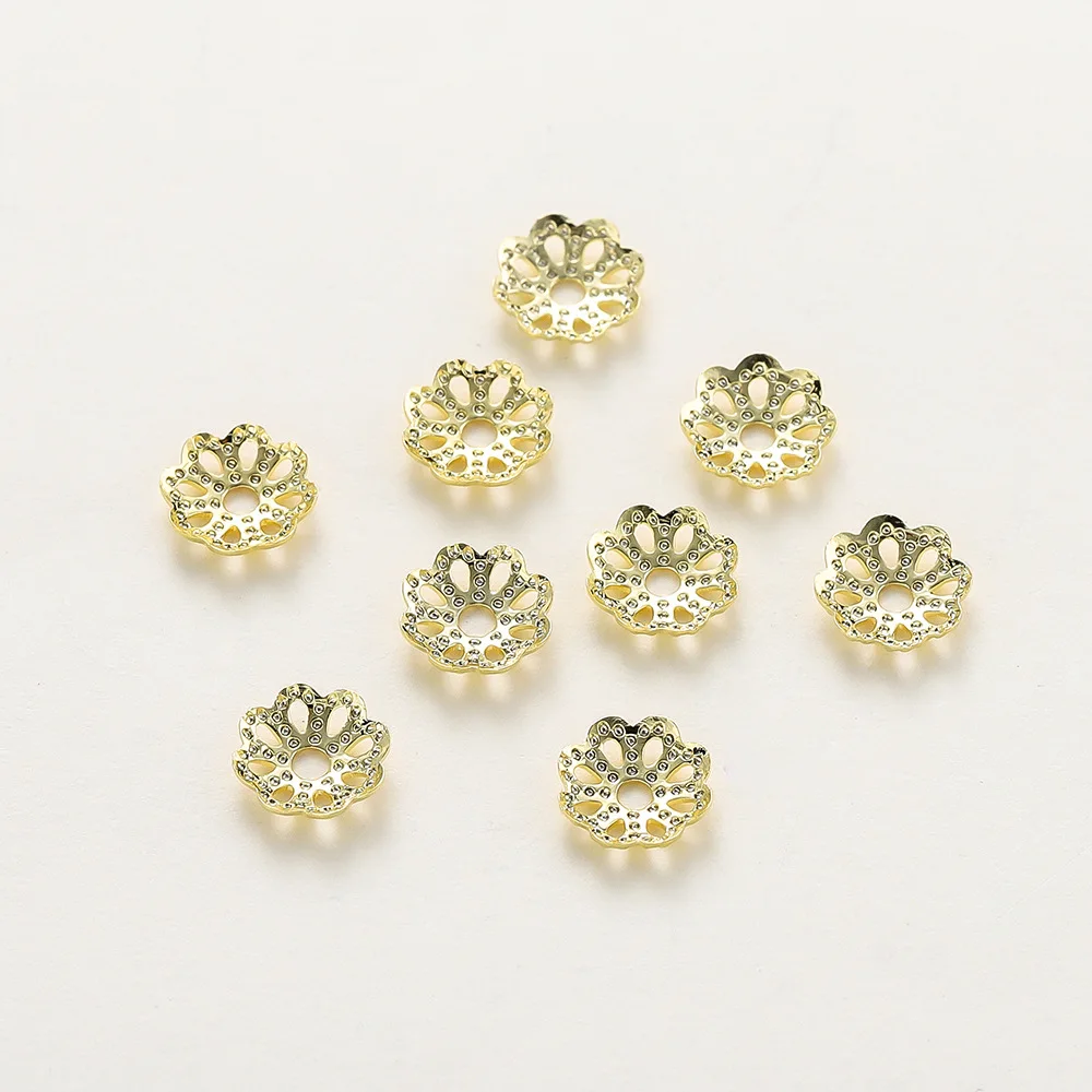 50Pcs Hot Selling Copper Bag Real Gold Hollow Leaf Pattern Flower Holder Hand String Spacer DIY Jewelry Hat Holder Wholesale