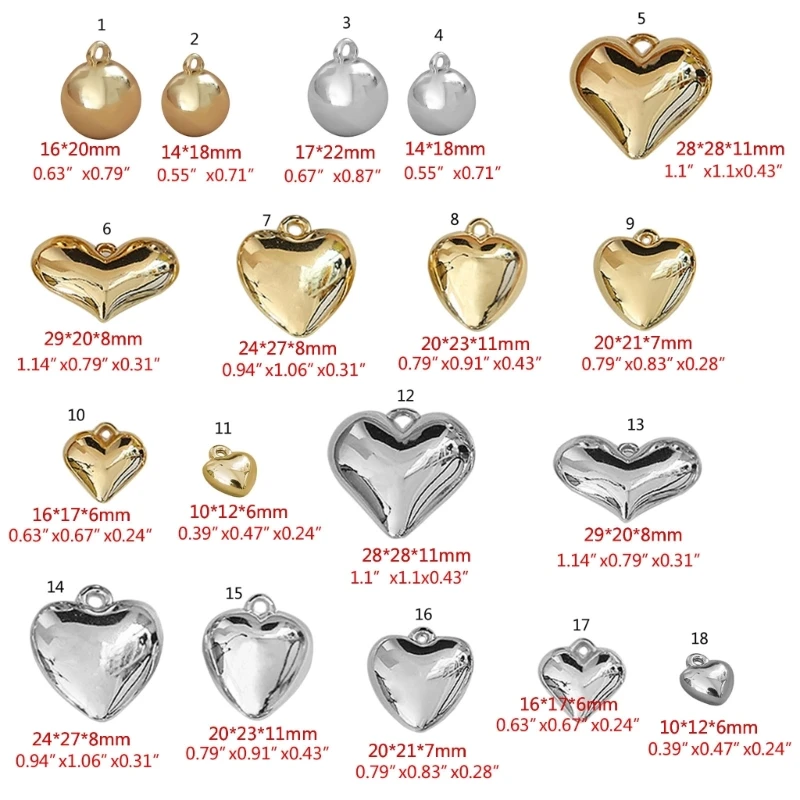 652F 3D Puffed Heart Pendants Charms Solid-Ball Bead Charms for DIY Crafts Necklace Earrings Bracelet Jewelry Making Supplies