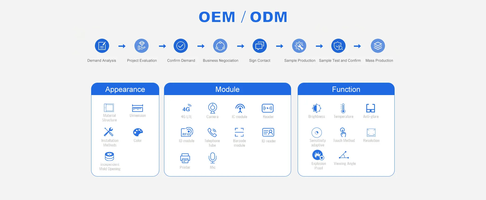 Our company supports a customized LOGO, SDK and PCBA, and also offer pre-installation services. Our factory also offer OEM service for custom samples .