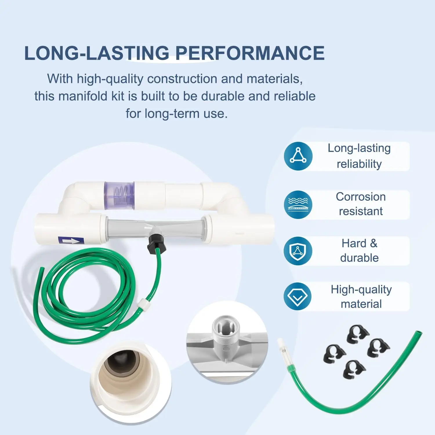【Premium Quality】This 9-0210-11 injector manifold is constructed from premium PVC, thicken material, passed hardness and durability tests, avoid break or leak. Selection of safe materials, good choice for a pool. Features good wear and corrosion resistance, can handle different types of environment and weather, long service life.