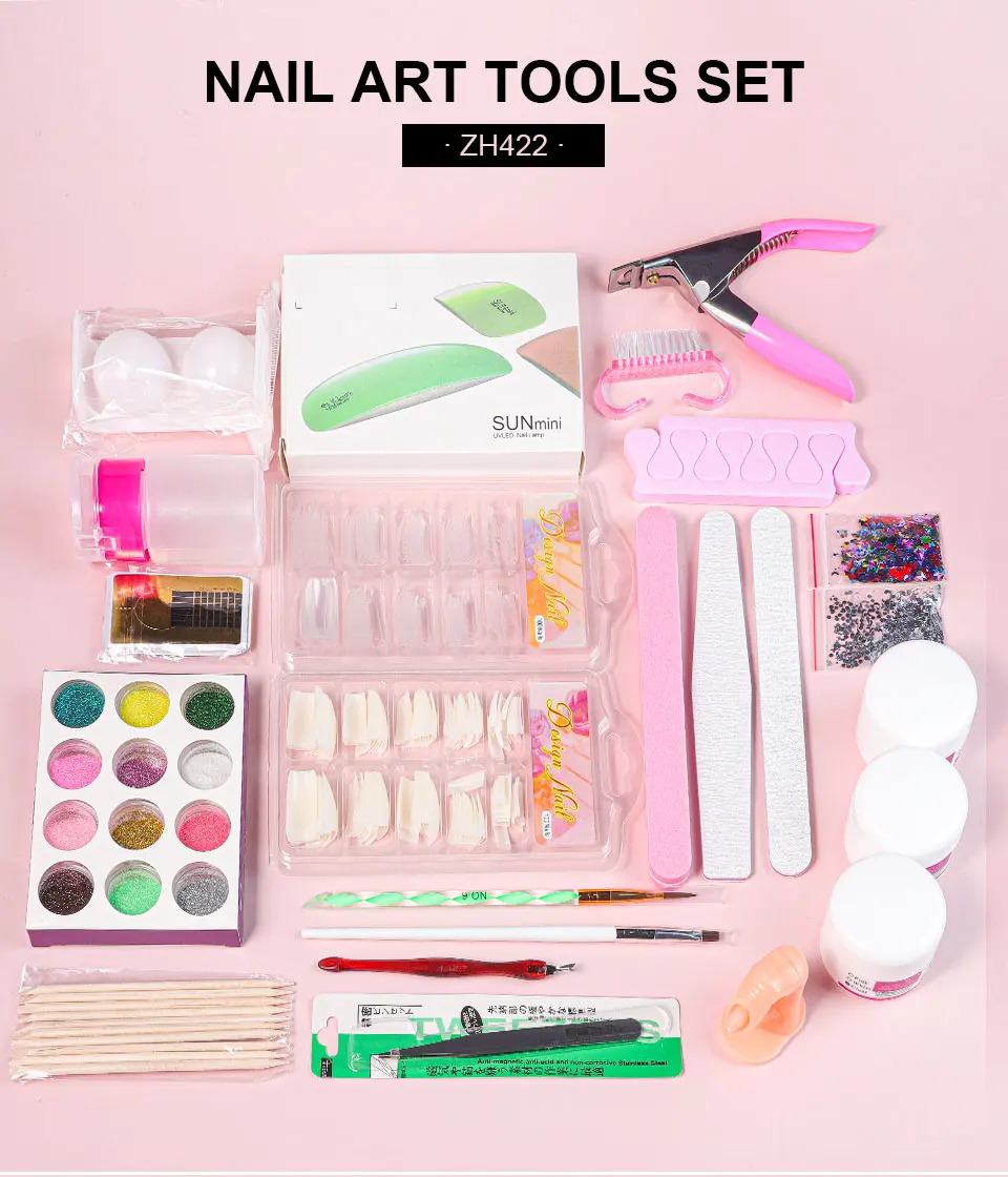 Acrylic Powder French Manicure Dust Professional White Clear Pink Crystal Polymer Builder Nails Extension Gel Kit Nail Set
