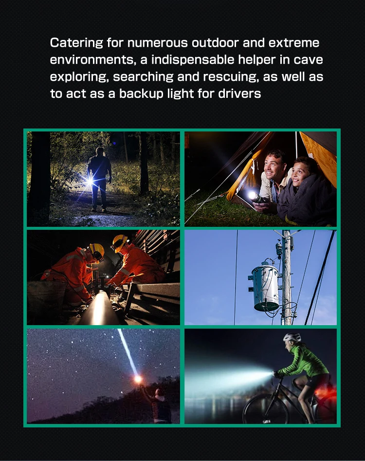 Catering for numerous outdoor and extreme environments, a indispensable helper in cave exploring, searching and rescuing, as well as to act as a backup light for drivers