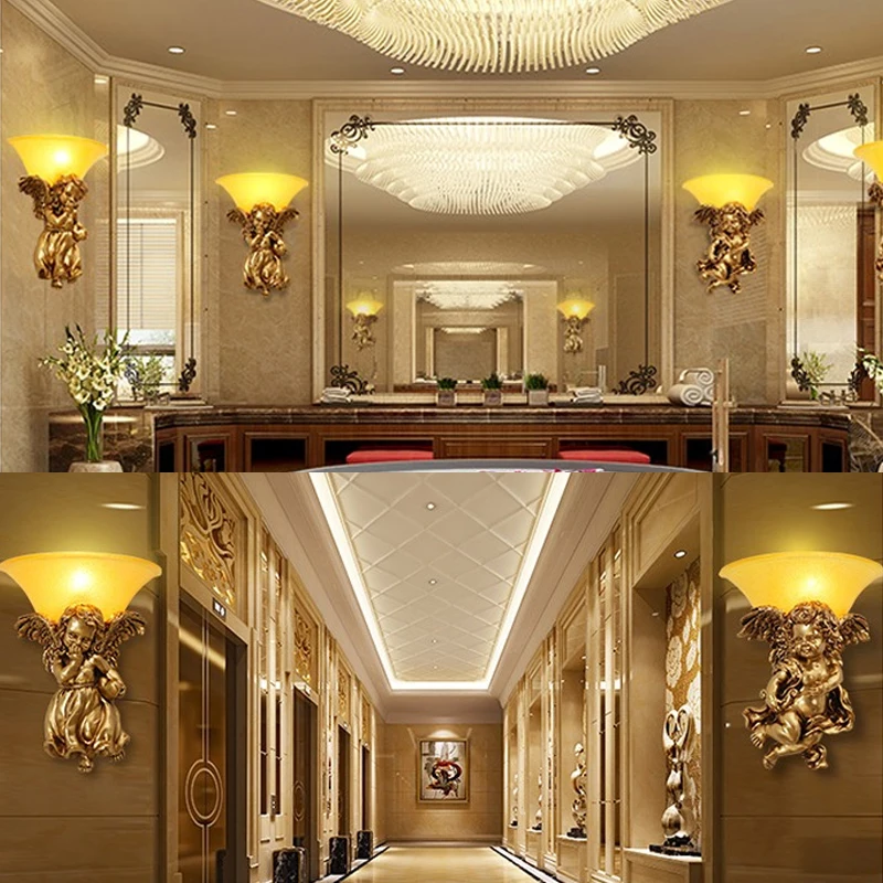 Angel Baby Kids Wall Lamp Sconces Gold LED Lighting Fixture for Living Room Bedroom Wall Mirror Light Art Home Luminarias Decor