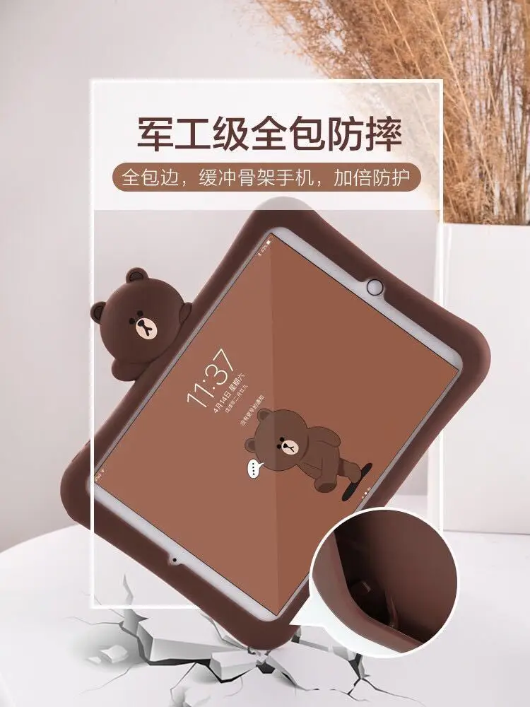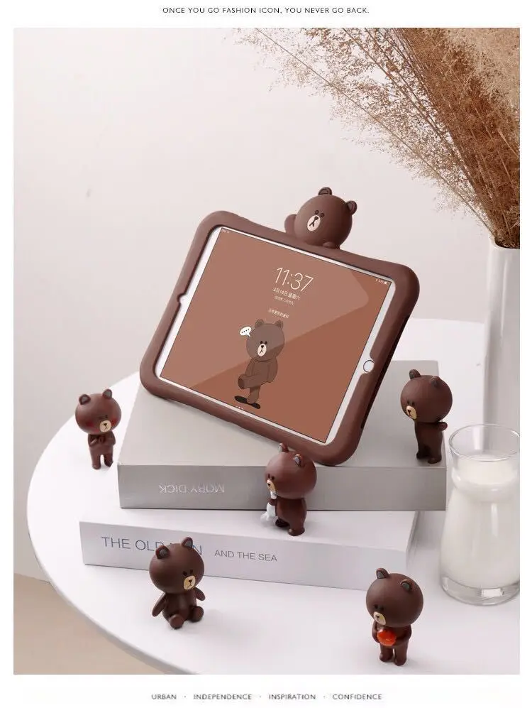 Brown Line Friends Apple 2021 New Ipad Cartoon Doll Protective Cover Ipad2/3/4/5/6 Tablet Mini2 Silicone Air2 Anti-fall Shell