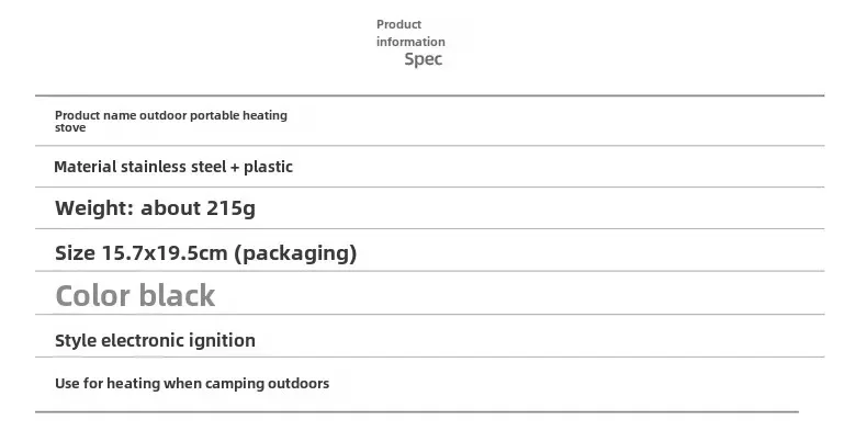 • Versatile Use :Whether you’re camping, fishing, or just enjoying the outdoors, this mini heating stove is an essential tool for maintaining comfort and warmth.