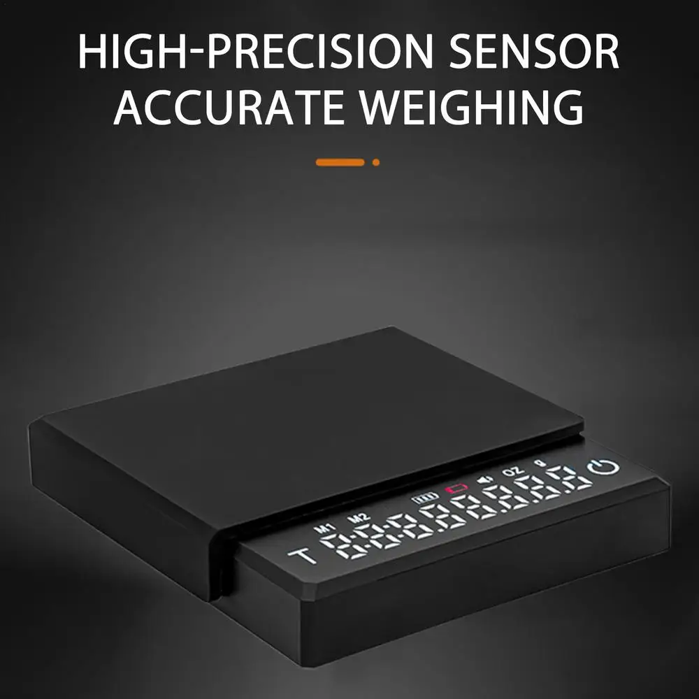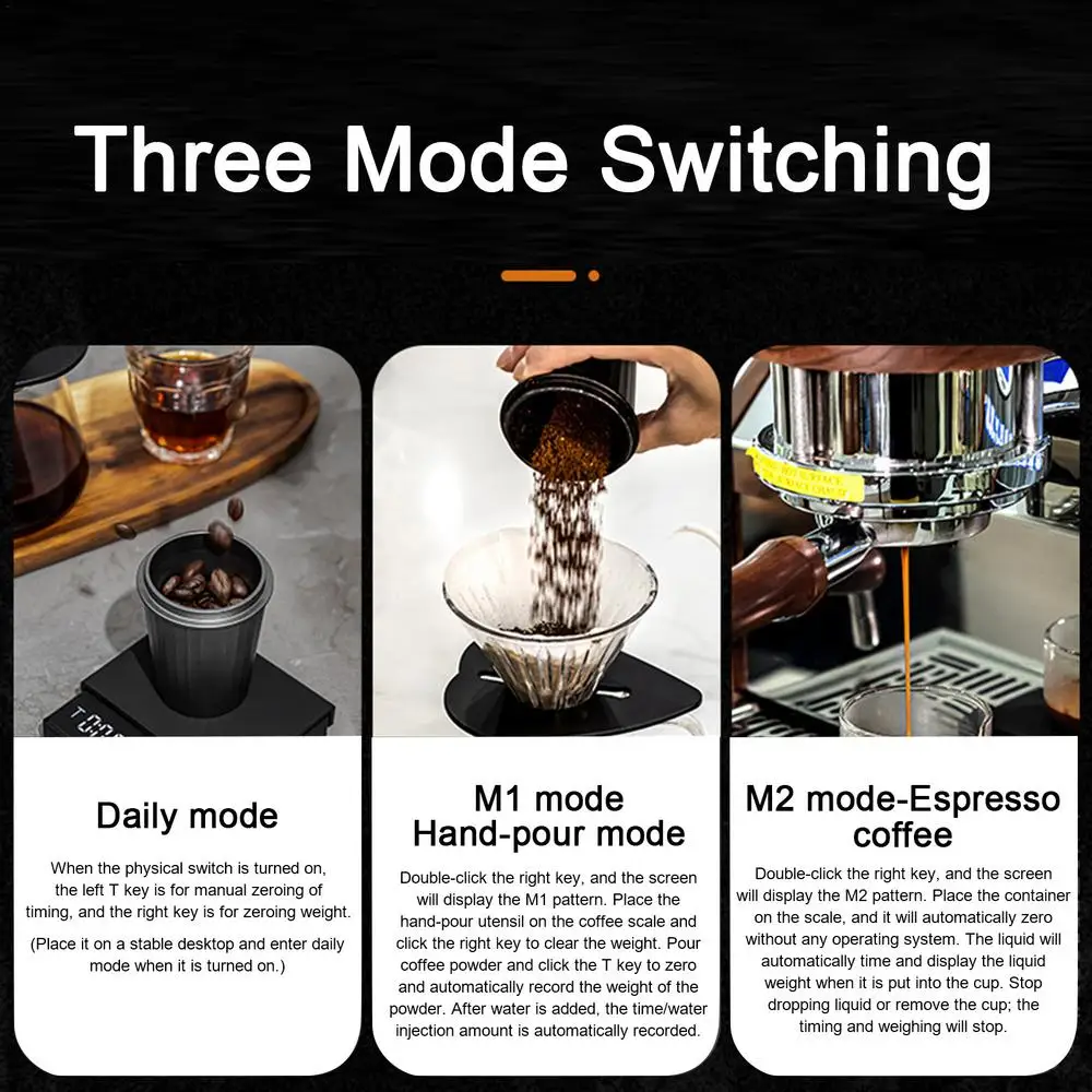 2.Precision Performance: Improve your brewing game with a coffee scale that provides 0.1-gram measurement precision. Experiment with different ratios and adjust your recipe until you achieve the perfect flavor.