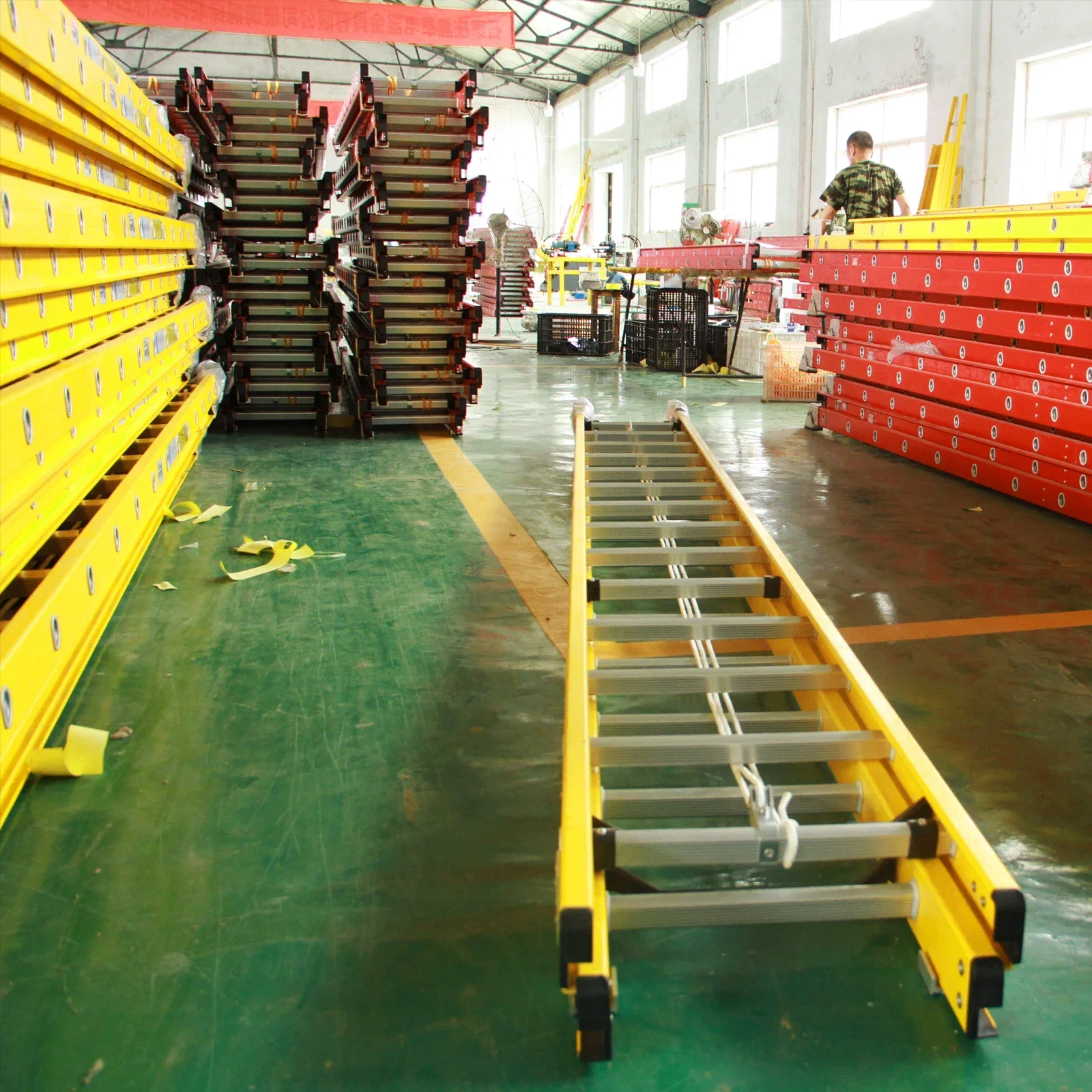 Red or Yellow 4.08m 5.28m 6.48m 7.68m 8.86m 9.80m 10.7m Fiberglass Extension Ladder