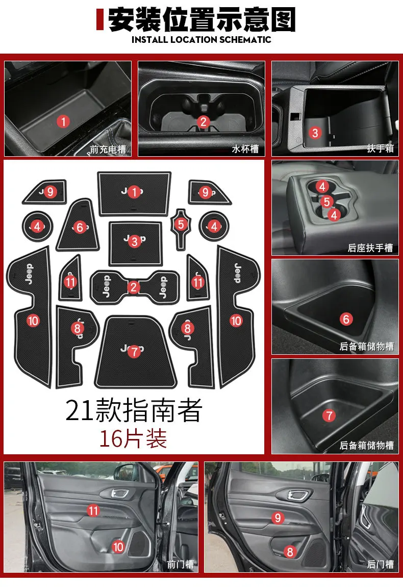 For Jeep Compass 2021 Car Interior Door Groove Mats Gate Slot Pad Non-slip Cup Mat Accessories Cover