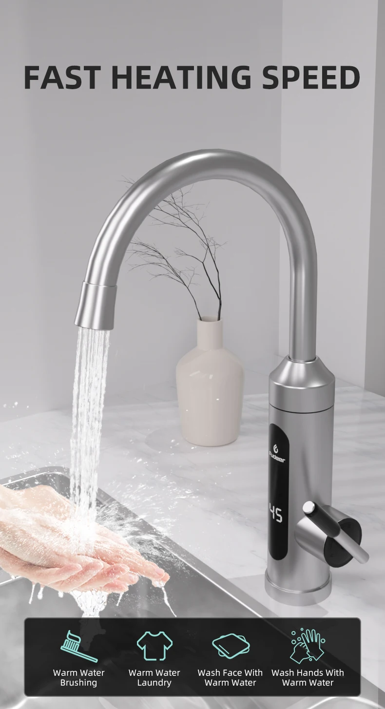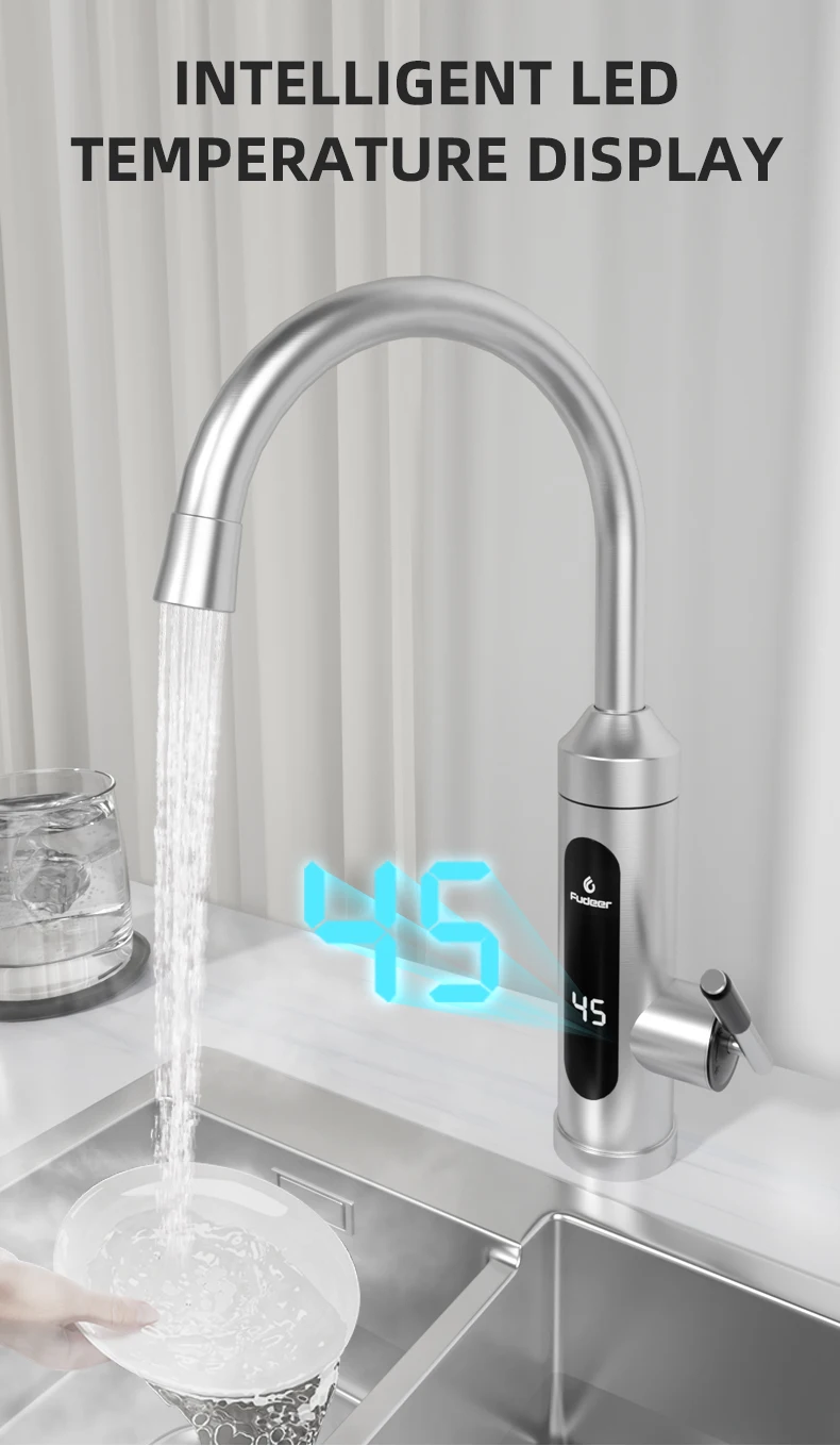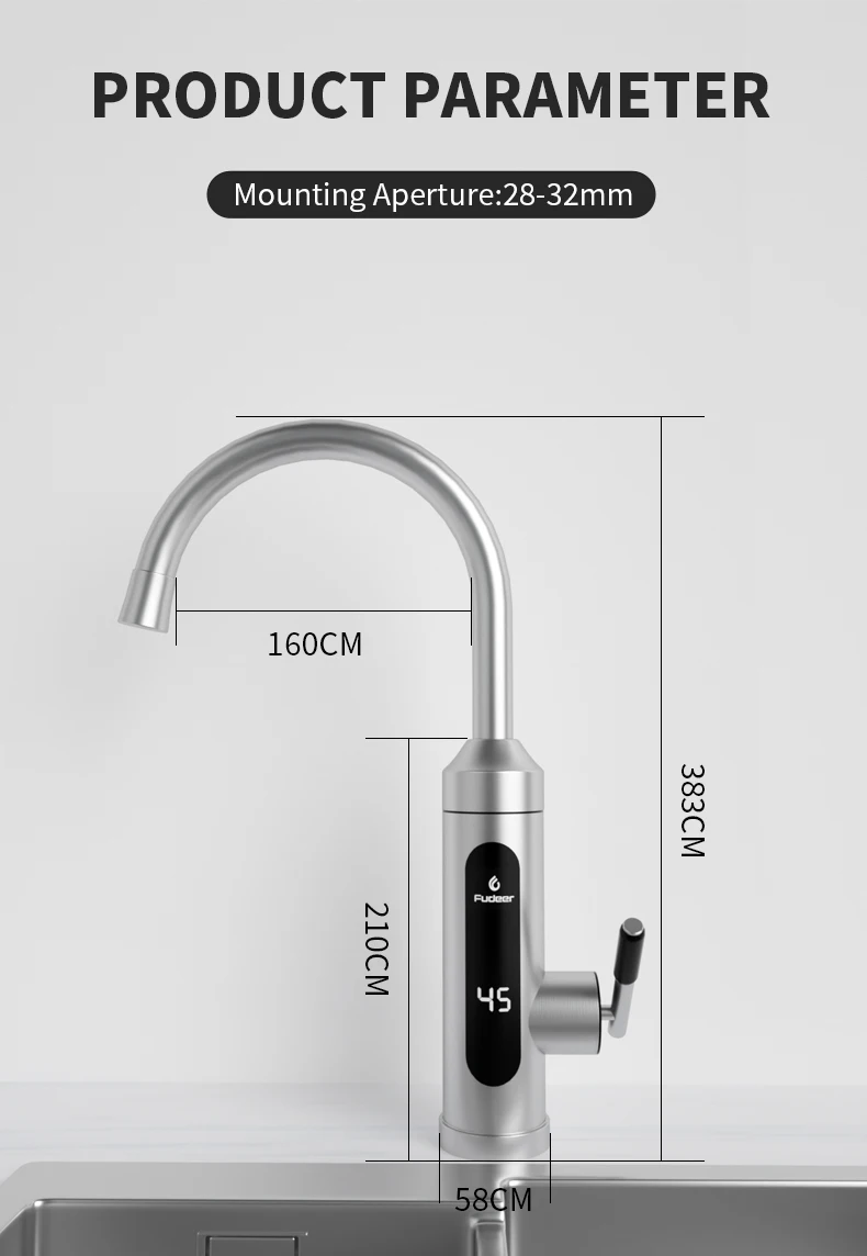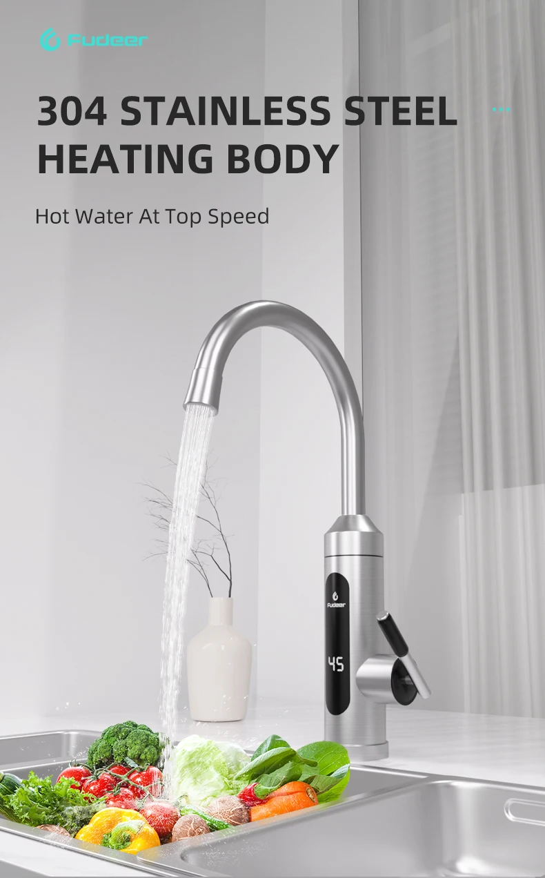 Fudeer Kitchen Faucet Two Function Single Handle Pull Out Mixer Hot and Cold Water Taps Deck Mounted Instant Water Heater